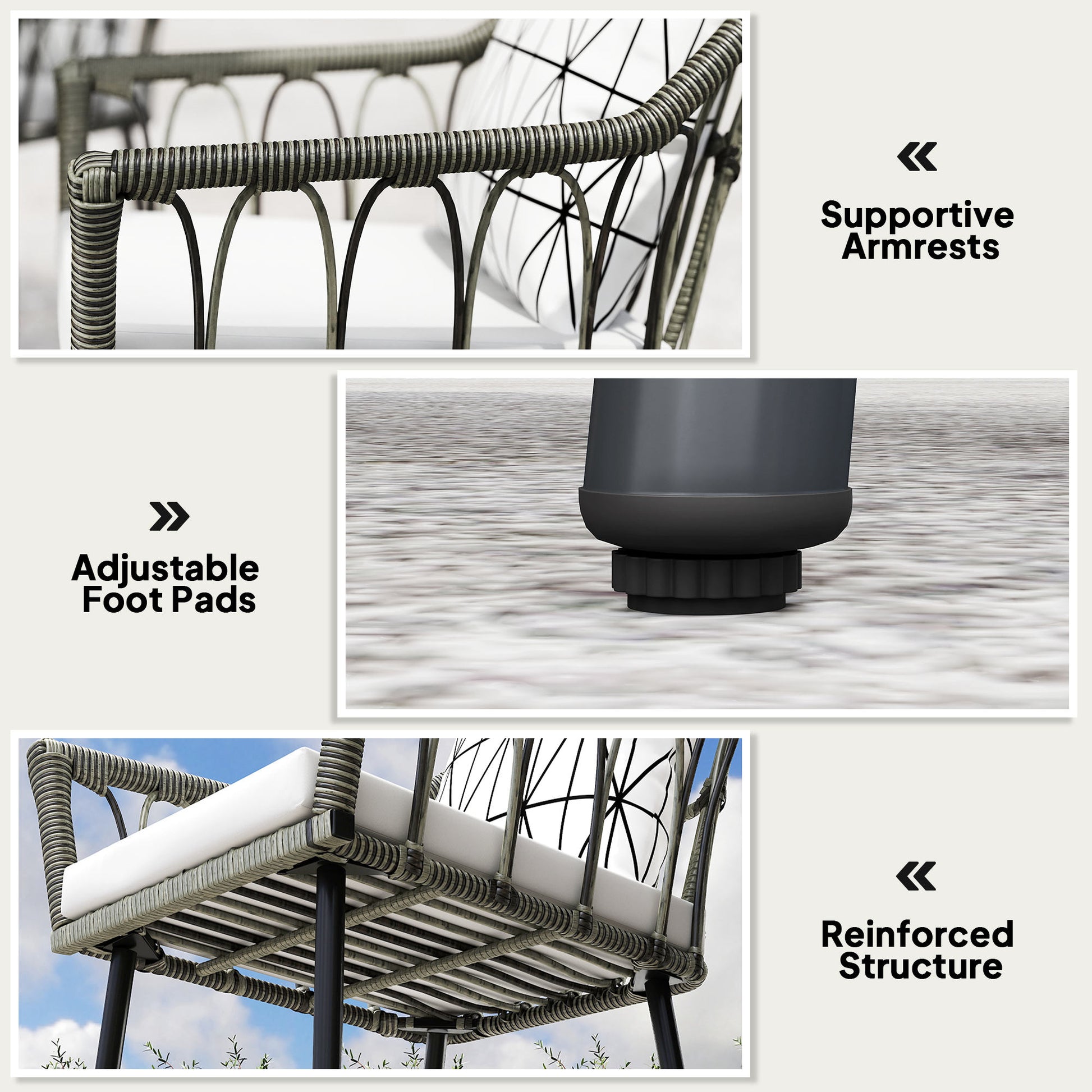 Transform your garden into a haven of relaxation with the Outsunny outdoor table and chairs. This 5-piece patio table and chairs feature a classic rattan design, complete with a soft cushion and throw pillow for enhanced comfort. The table boasts a tempered glass top with a stone effect, offering both beauty and durability. Suitable for any outdoor dining area, this set promises style and comfort in your outdoor living space.