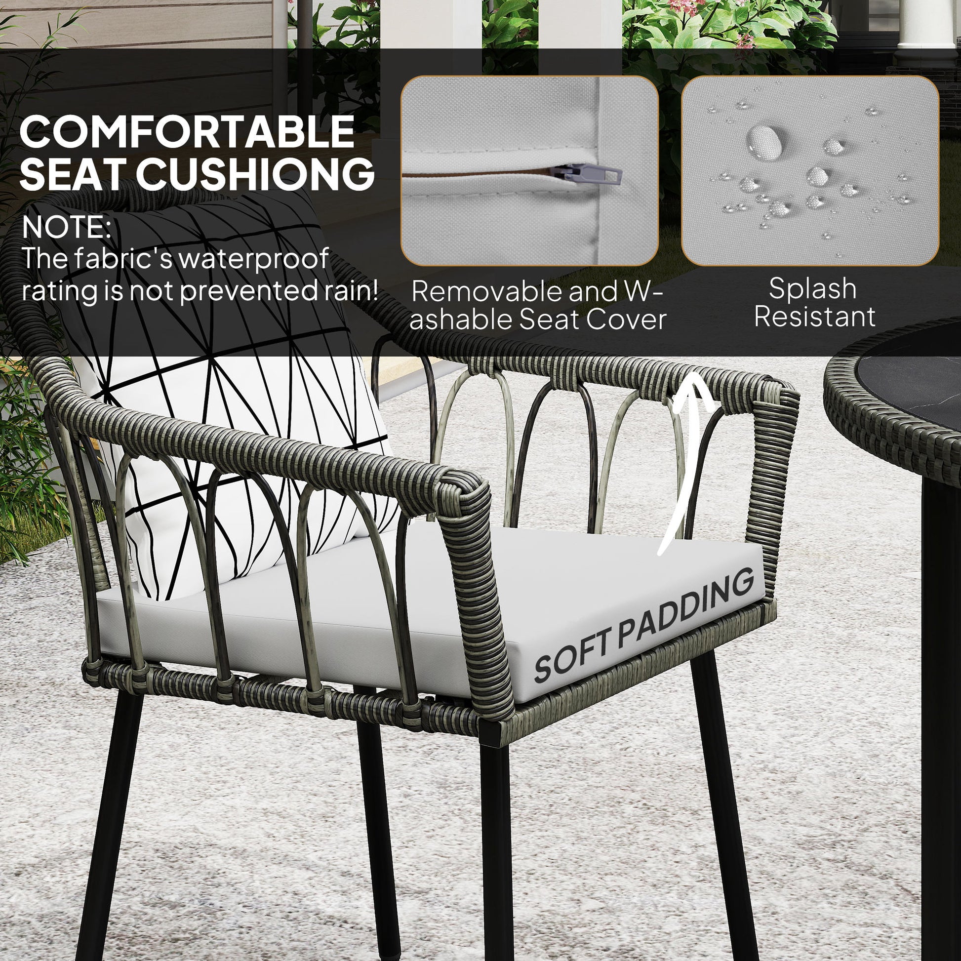 5 Piece Patio Rattan Dining Set, Wicker Garden Table and Chairs w/ Removable Seat & Back Cushions, Round Tempered Glass Tabletop, Parasol Hole, Grey