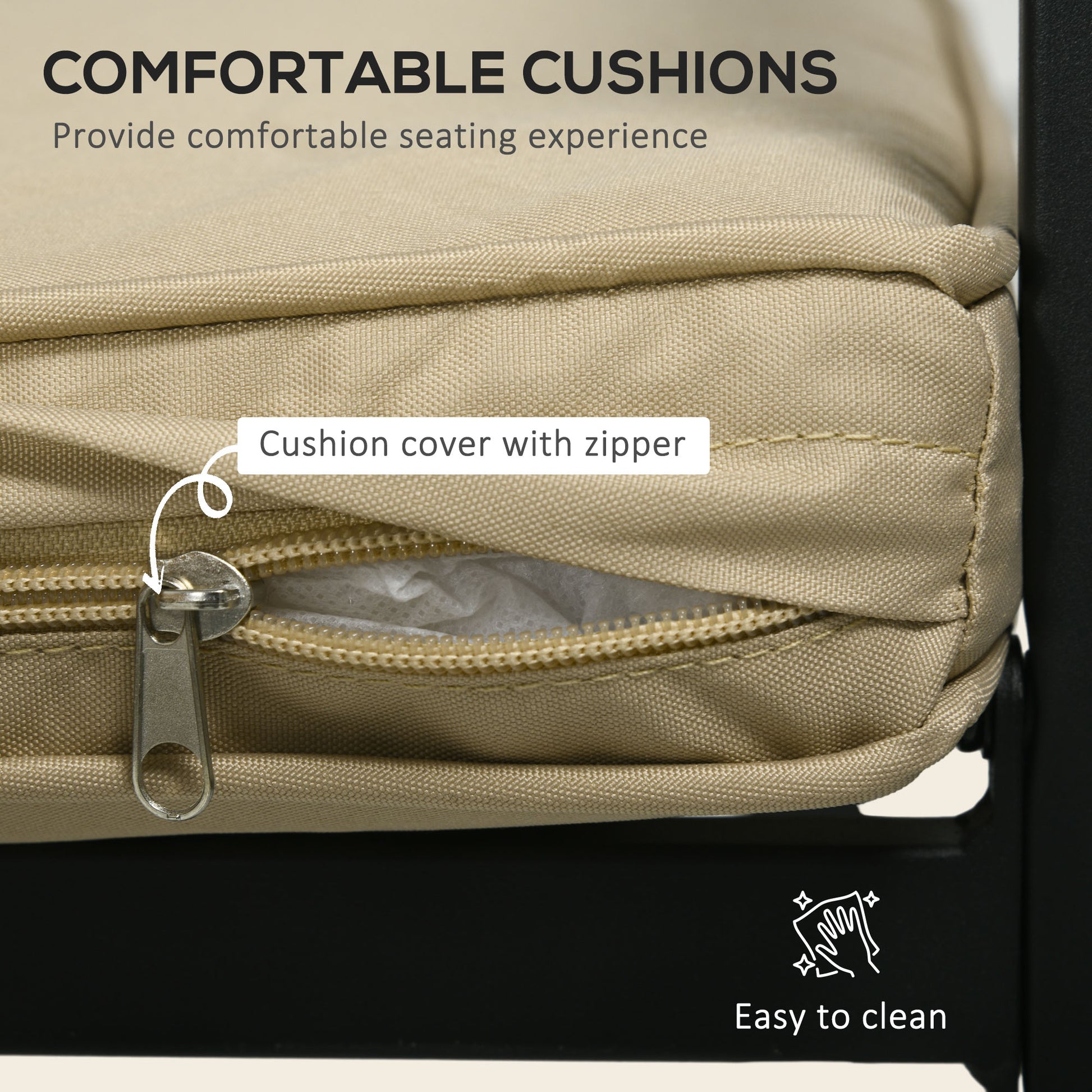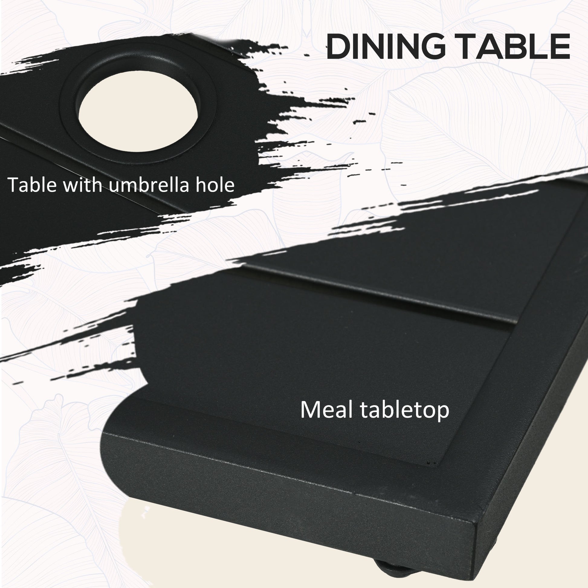 Outsunny 5 Pieces Garden Dining Set with Cushions, Outdoor Table and 4 Stackable Chairs, Metal Top Table with Umbrella Hole, Black
