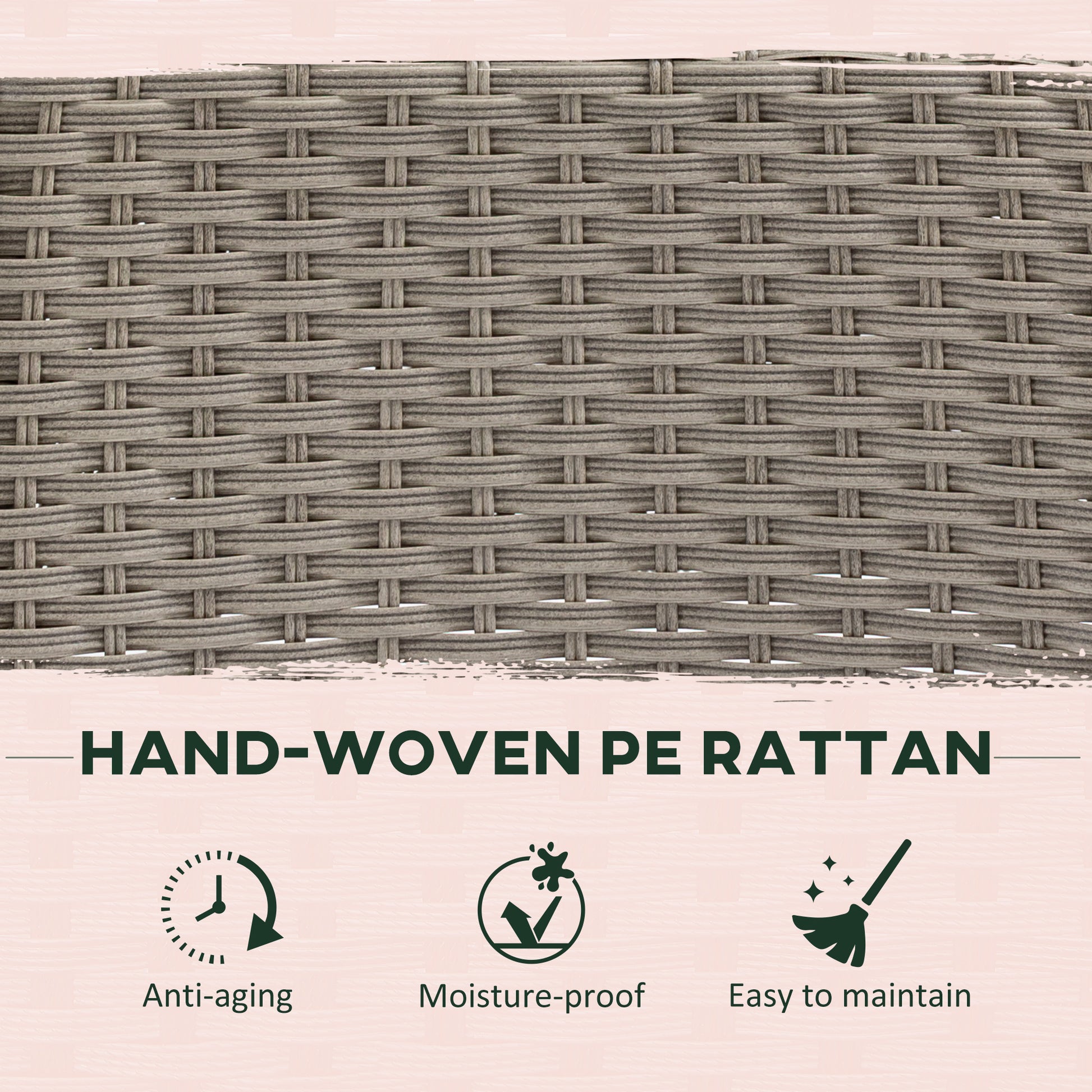 - Metal frame for a strong core, wrapped in durable plastic wicker