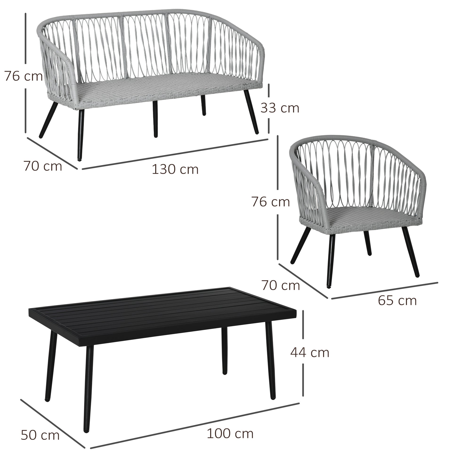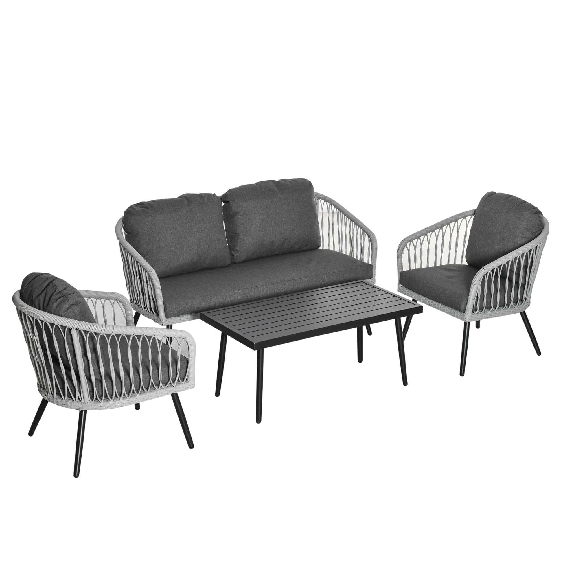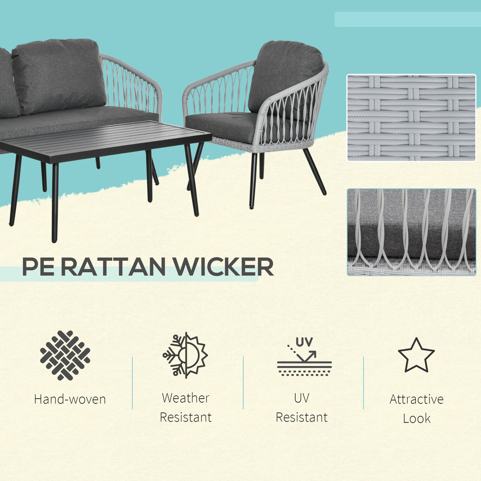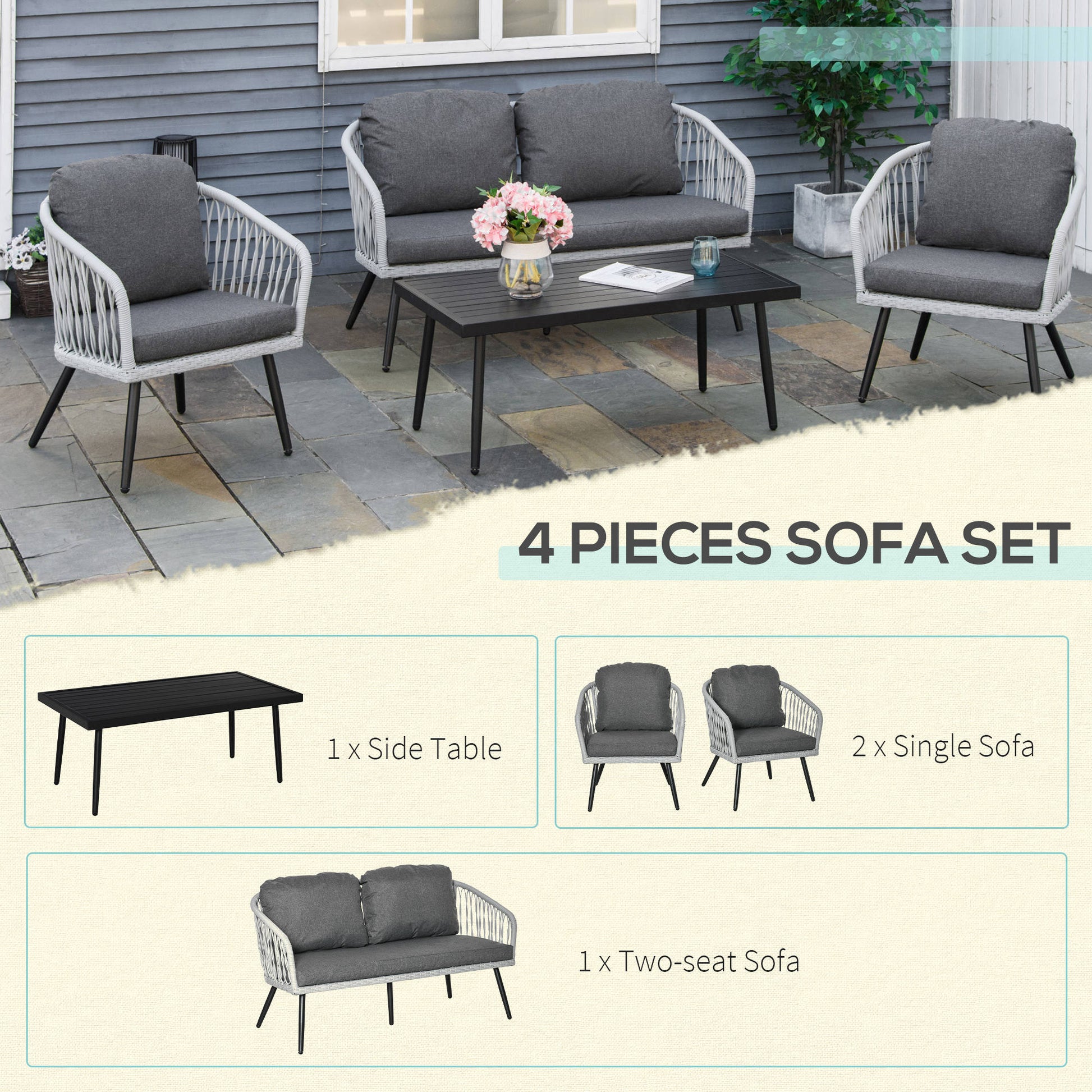 - 4 pieces of rattan sofa set includes 2 single sofas, 1 loveseat and 1 coffee table