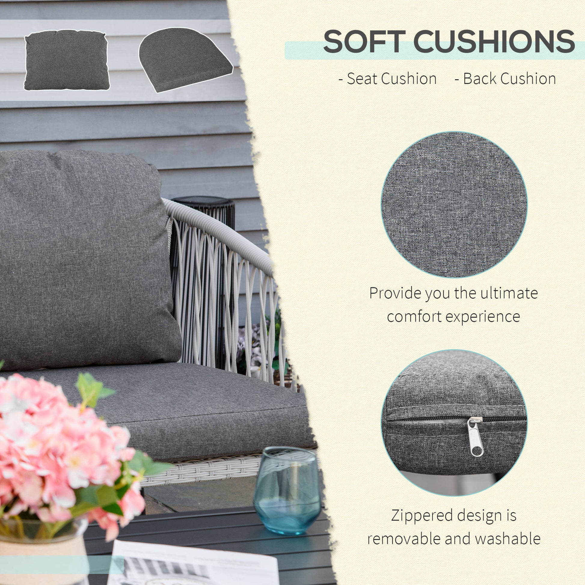 - Zippered cushion cover is detachable and easy to wash