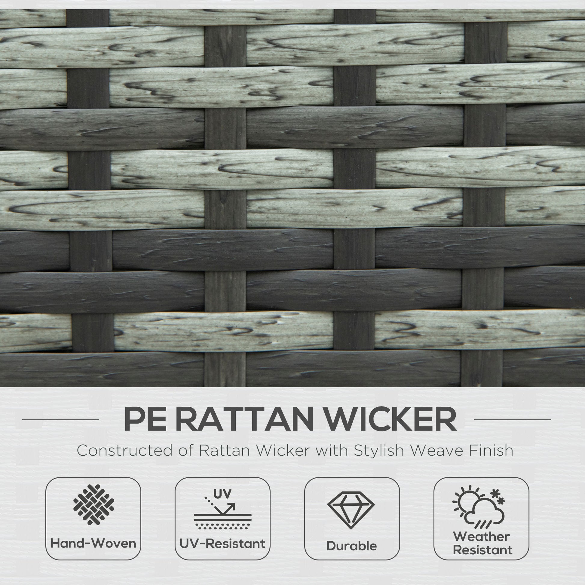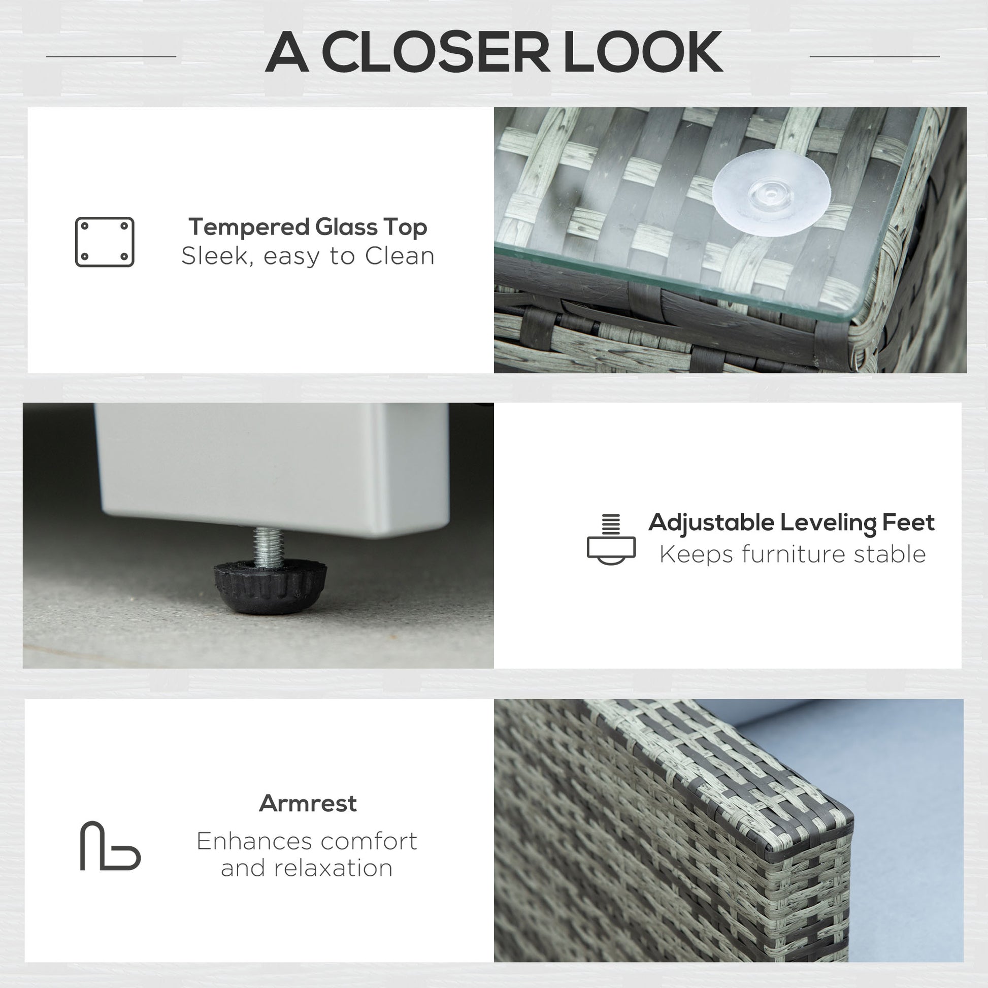 This Outsunny rattan furniture set allows you to rest and relax outdoors. Rust-resistant steel frames make strong pieces, with plastic wicker for a beautiful and durable rattan look. Seat and back cushions for comfort. Tempered glass tabletop for a sleek look - easy to maintain.