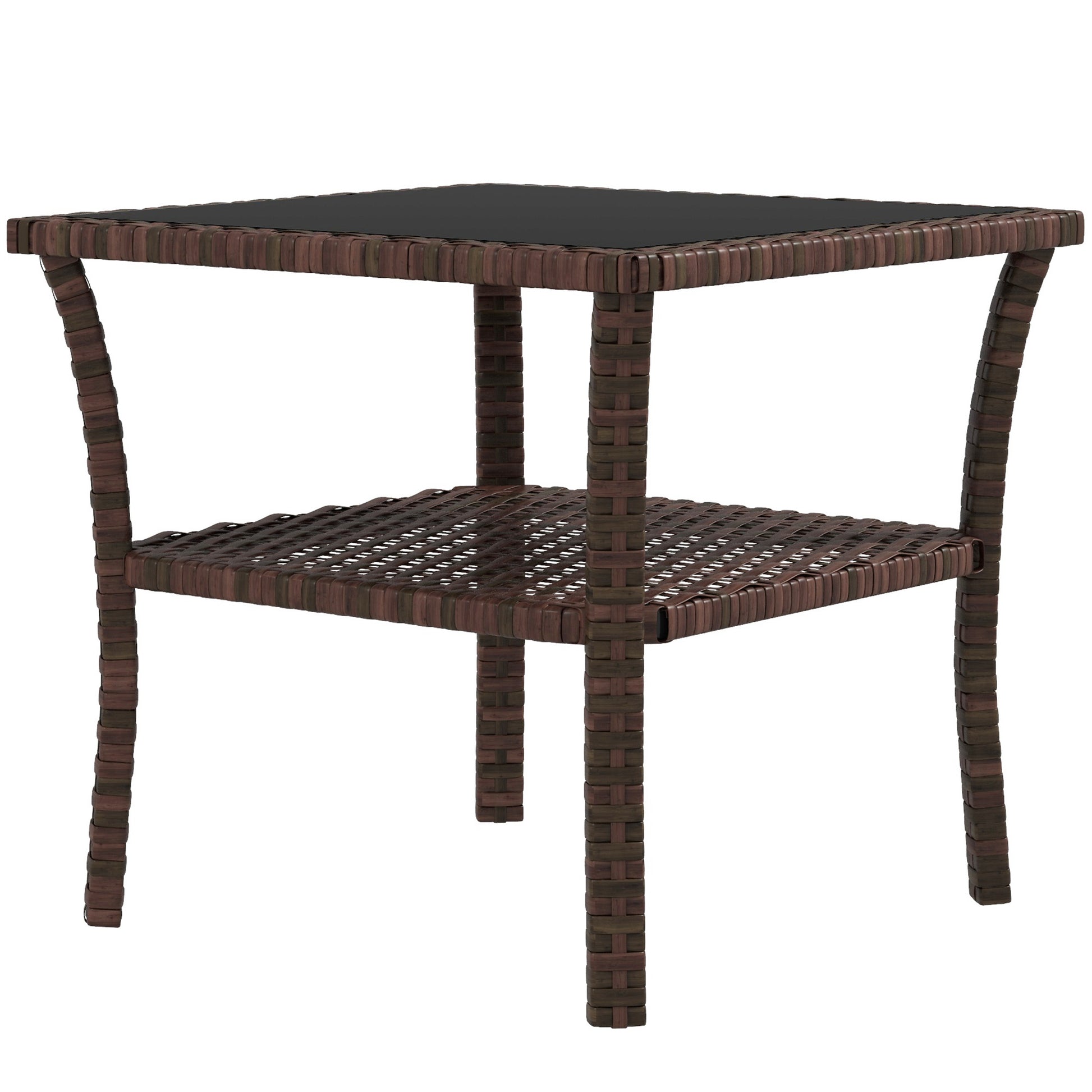 Outsunny 50cm Outdoor PE Rattan Coffee Table, Patio Wicker Two-tier Side Table with Glass Top, for Patio, Garden, Balcony, Brown
