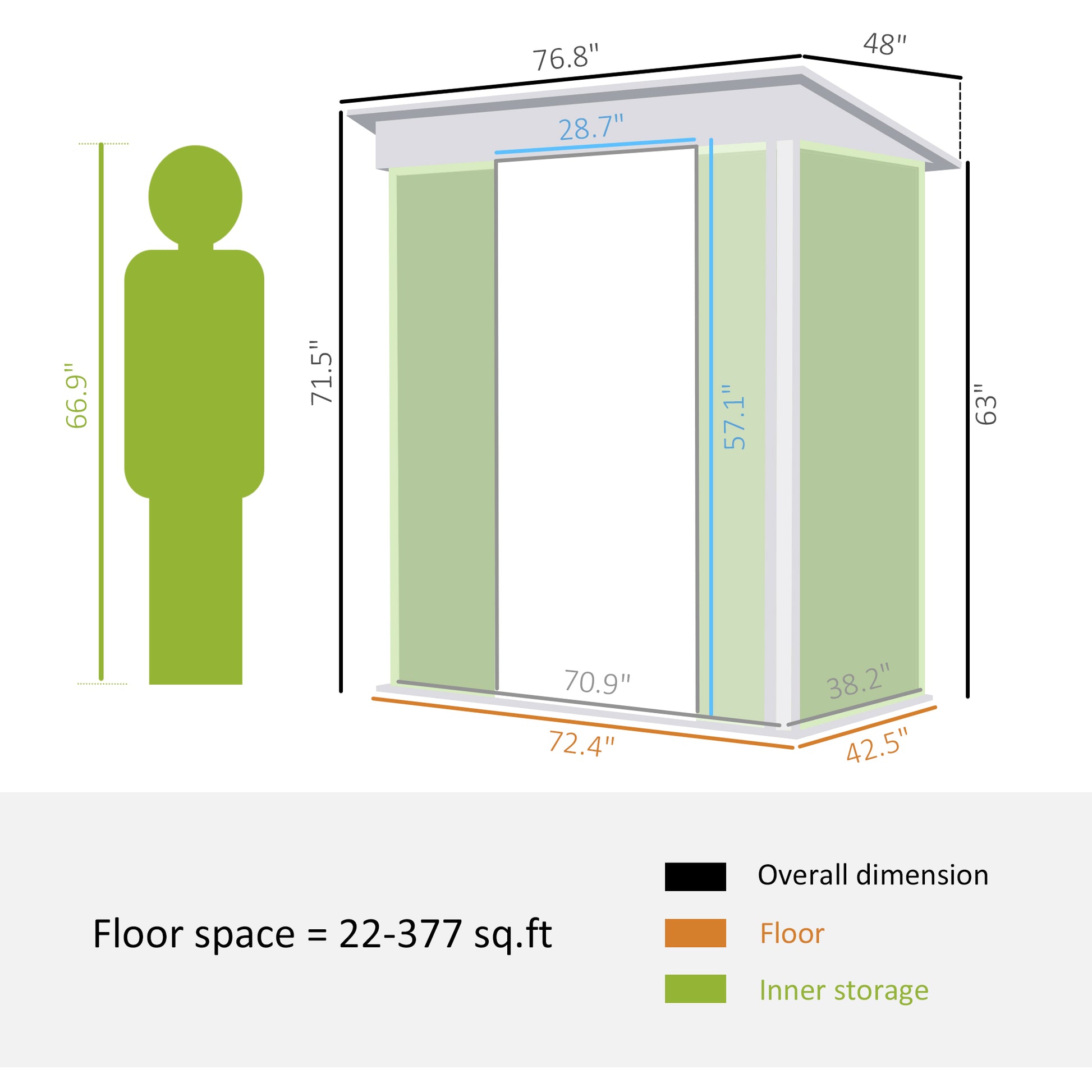 Easily add storage space and value to your property when you use a metal shed from Outsunny. Keep expensive equipment outside and out of harm's way with its waterproofed galvanised roof. Mitigate moisture and musty odours with ventilating windows. The door has a locking mechanism to keep tools safe from thieves and misuse. Roll out your lawnmower with space to spare. Feel free to place shovels, seeds soil and rakes. Get out, get productive, get Outsunny.