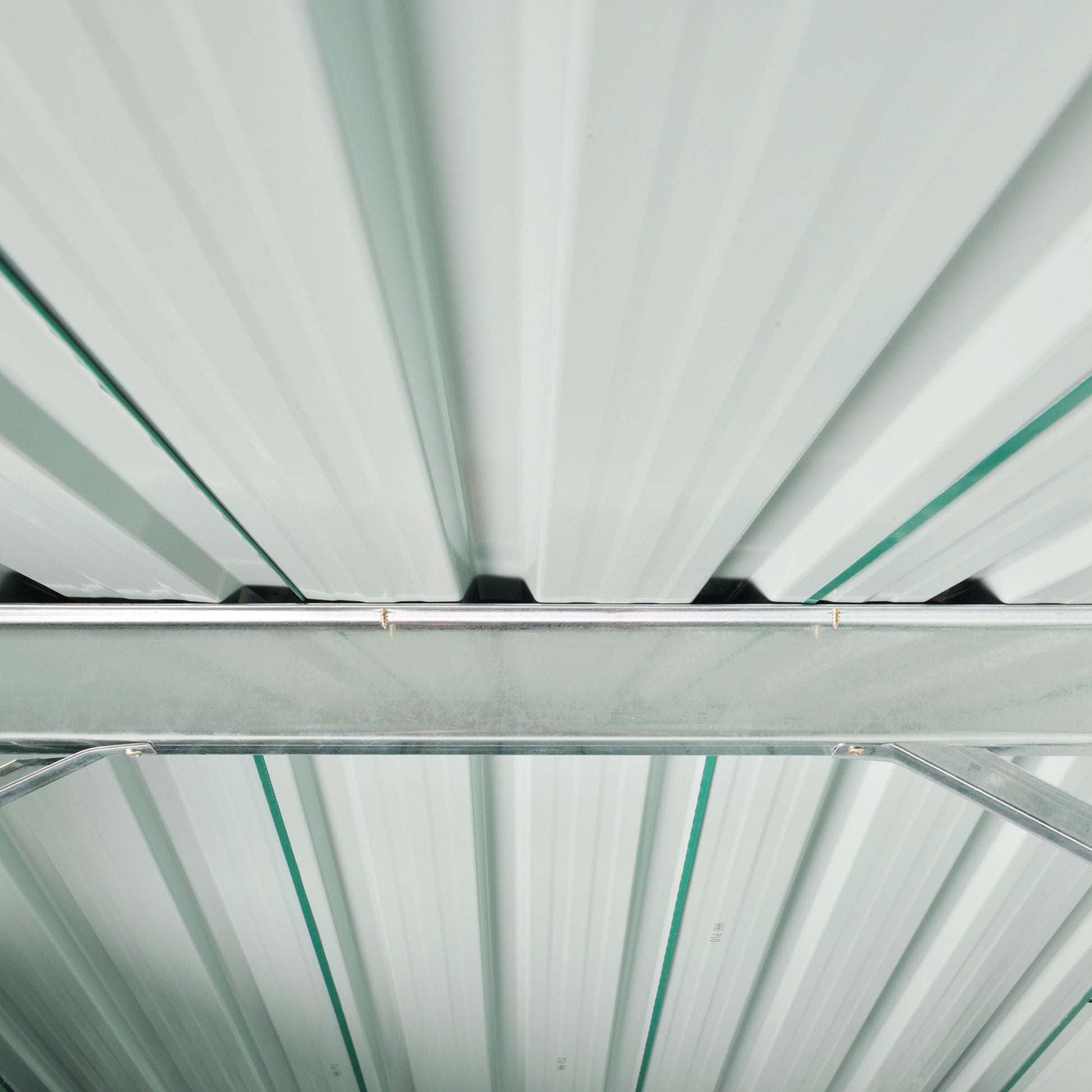Keep your garden equipment and outdoor essentials locked away securely with this Outsunny 3.6 x 6.3ft metal storage shed. Built from galvanised steel for enduring reliability, double sliding doors on the front for easy access and four vents for air to circulate and prevent moisture build-up. The double door shed is finished with a protective weather coating - idea for outdoor use, all year round.