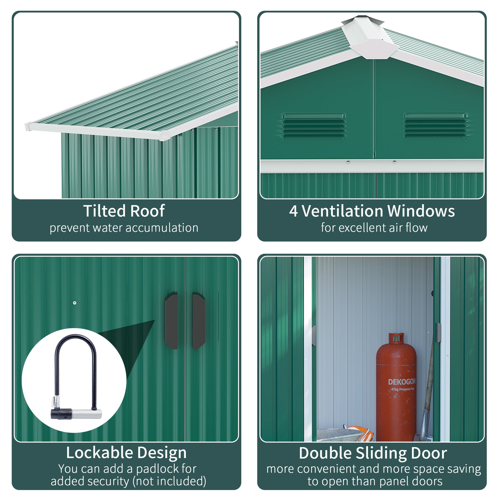 Outsunny 6.5ft x 3.5ft Metal Garden Storage Shed for Outdoor Tool Storage with Double Sliding Doors and 4 Vents, Green