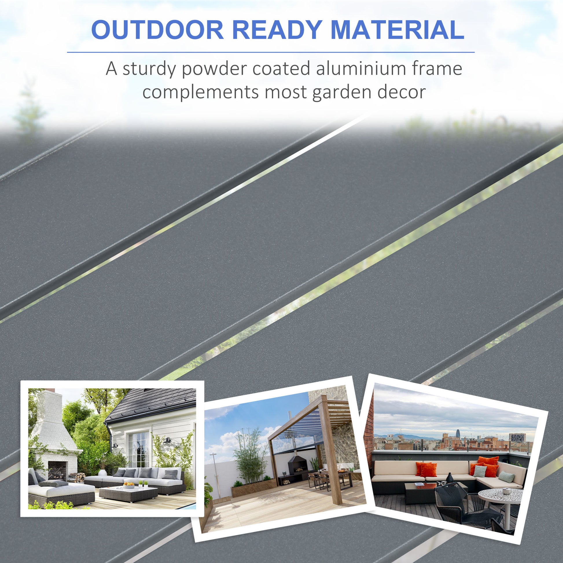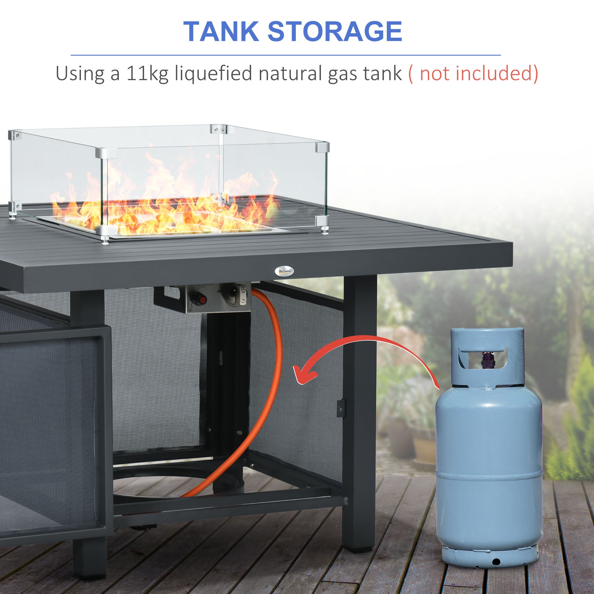 Relaxing evening times need never be cold again - do it in all with this Outsunny outdoor aluminium garden sofas set, with fire pit table. The two loveseats, corner seat and two footstools mean there's room for your favourites to gather round, with the table giving you somewhere to eat and drink from. In the middle of the table, there's a fire pit: provides up to 50,000 BTU power - plenty of heat for the colder climes. There's a wind guard for the fire, so you can keep peace of mind, at all times.