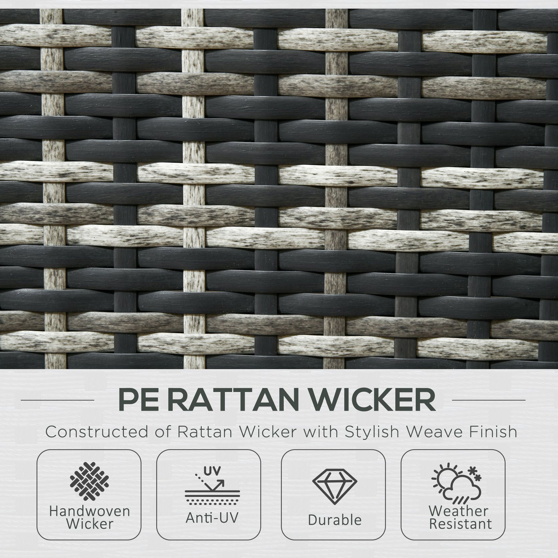 Say hello to comfort all day long, thanks to this Outsunny garden sofa set. It comes with three single-arm loveseats, two footstools and a coffee table: seats up to eight - but obviously you'll want more room to yourself! Using powder coated steel for strong frames, each piece is wrapped in plastic wicker for a stylish garden look, which enhances the durability. Padded seat and back cushions for comfort, with a sleek glass tabletop to complete the set.
