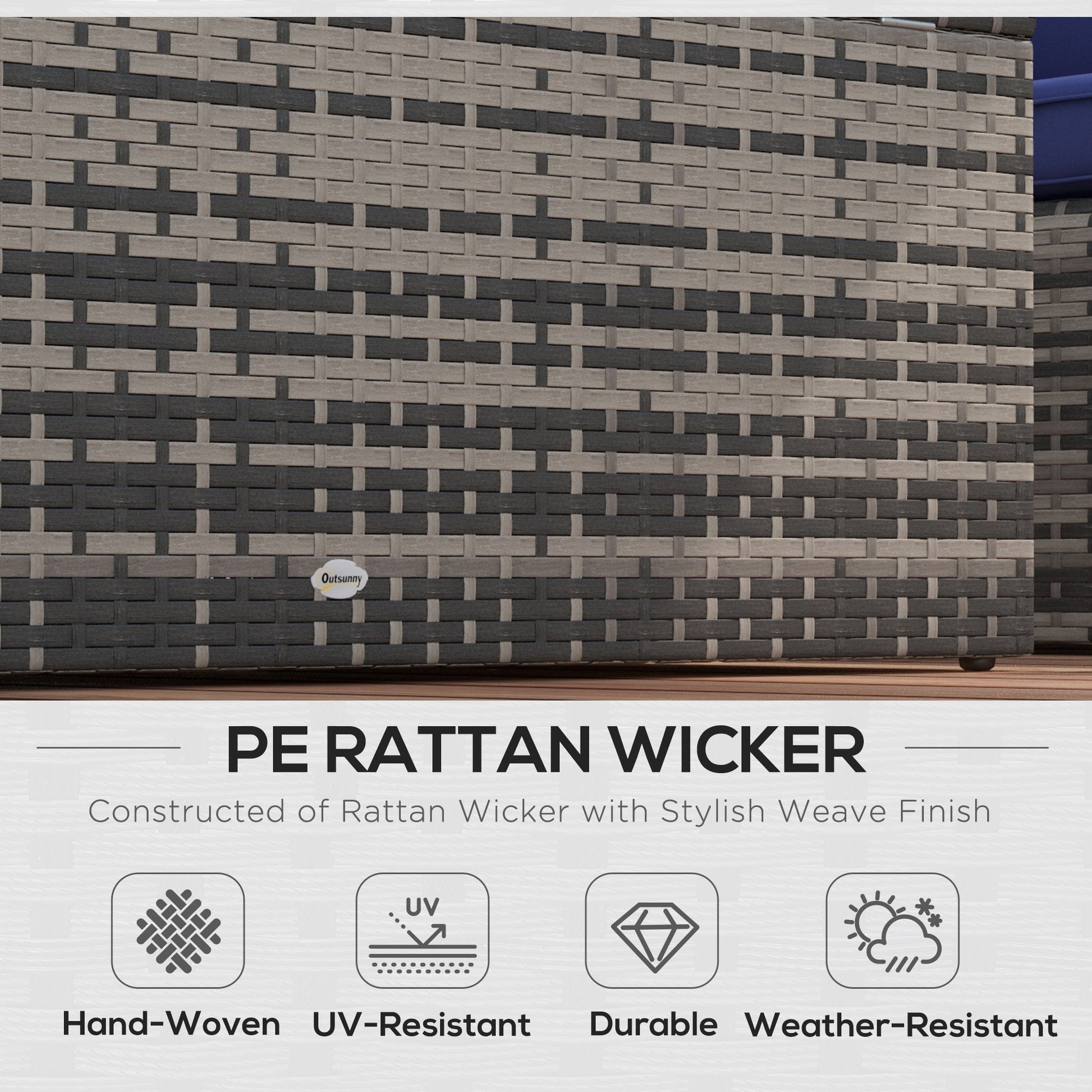 - Colour: Mixed Grey Rattan, Navy Blue Cushion