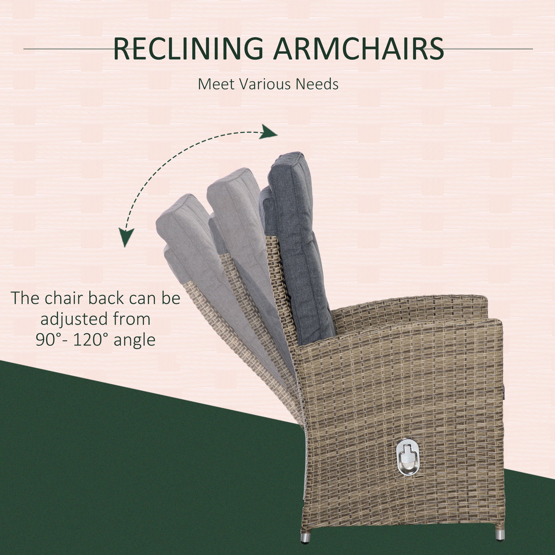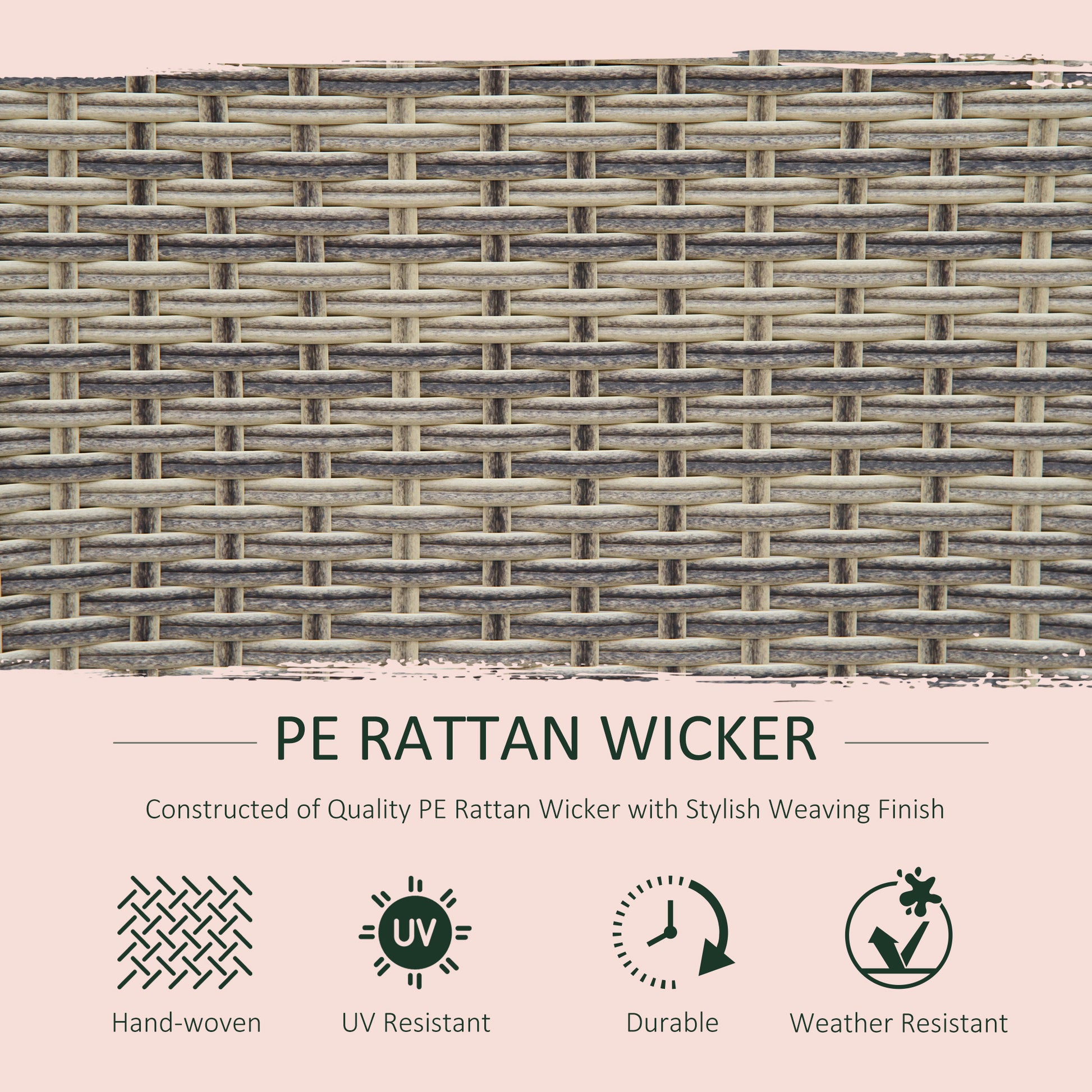 Outsunny 6 Pieces PE Rattan Dining Set, Patio Wicker Conversation Furniture, Tempered Glass Table-top Dining Table w/ Storage Layer, Mixed Grey