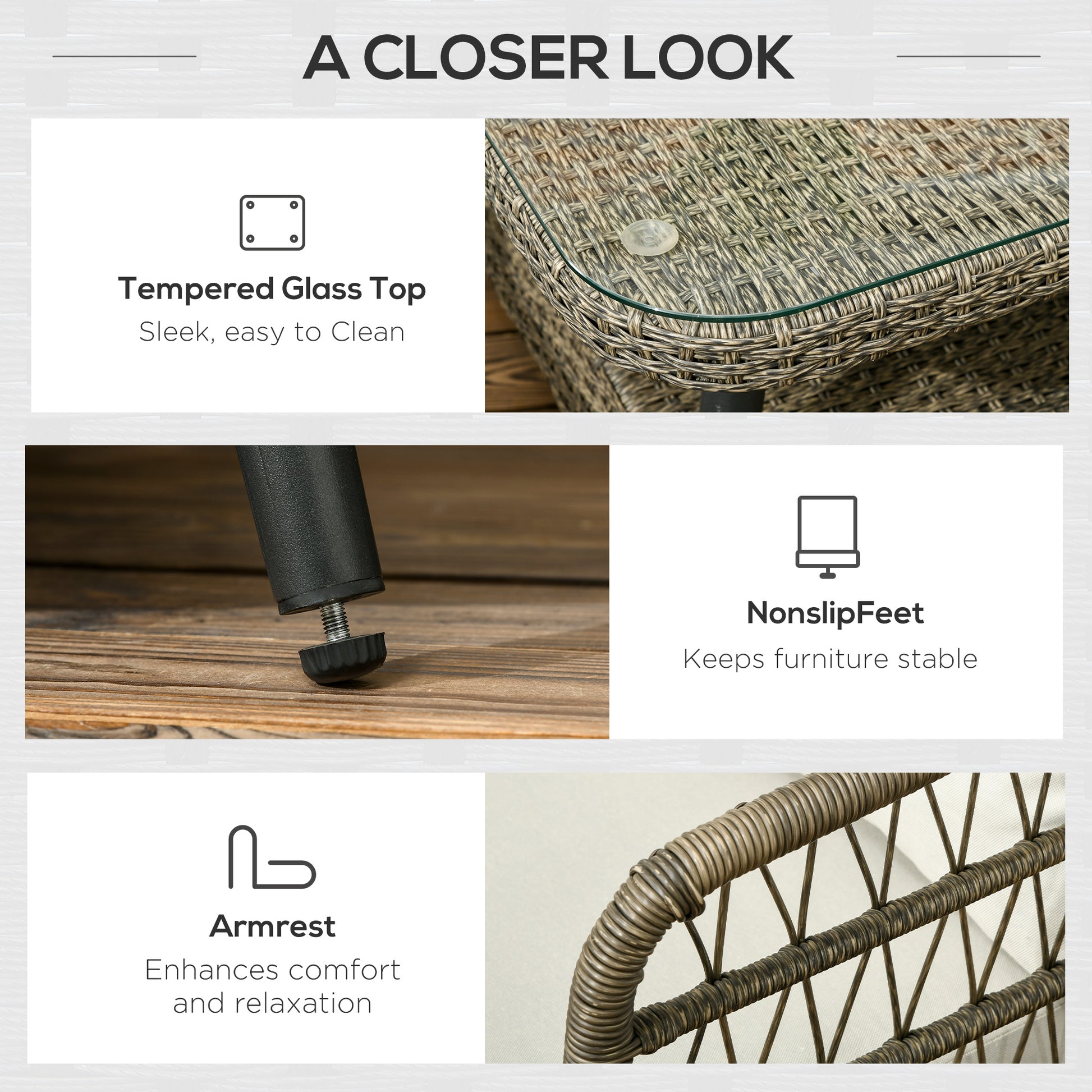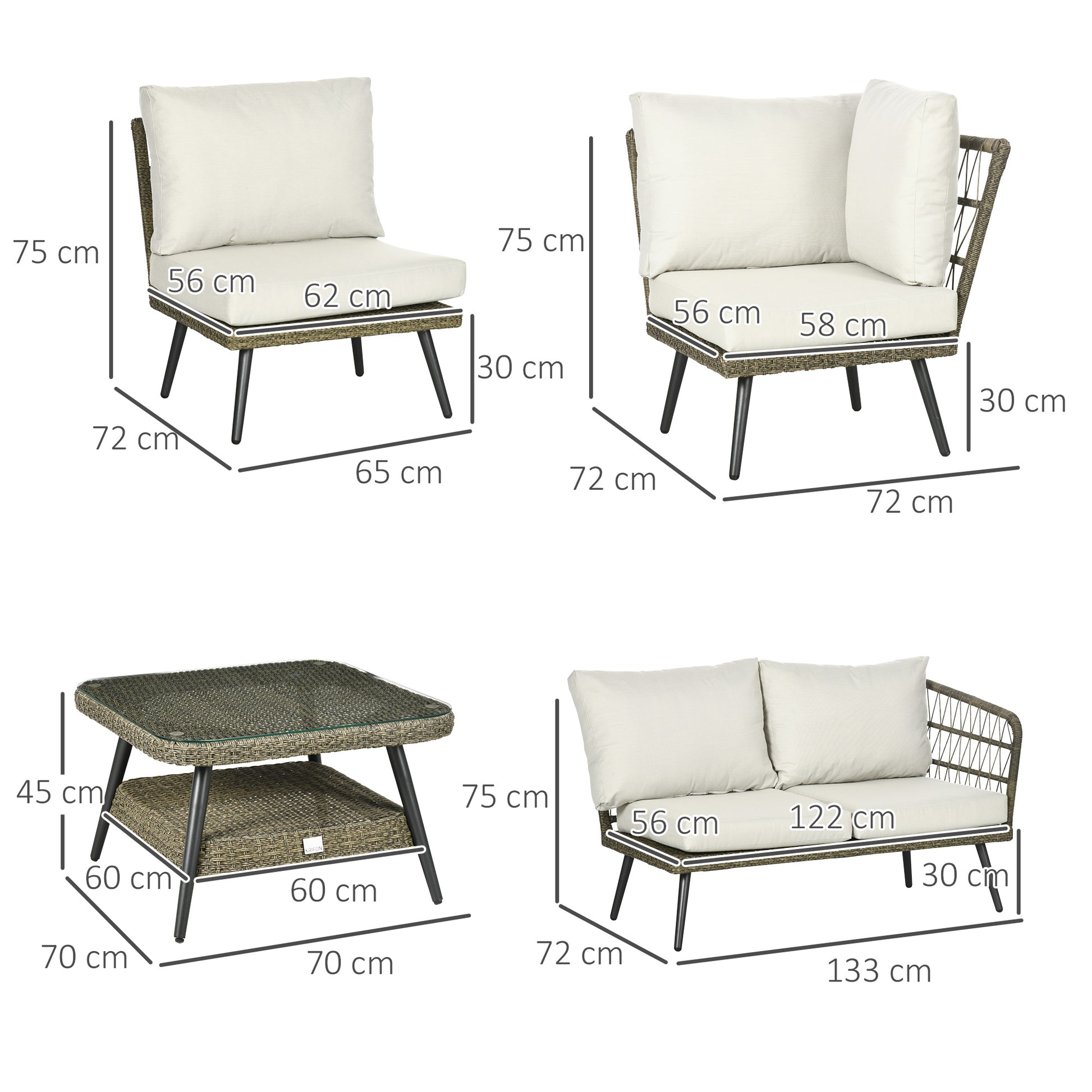 Hide away in your own private corner outdoors, with this Outsunny rattan garden furniture set. Set comes with an armless chair, corner chair, right-handed loveseat and coffee table; each seat comes with a padded seat and back cushions for comfort, with removable and washable covers for hygiene. Powder coated aluminium frames for strong, supportive structures, wrapped in plastic rattan for extra durability. A beautiful addition, made for every kind of outdoor spot.