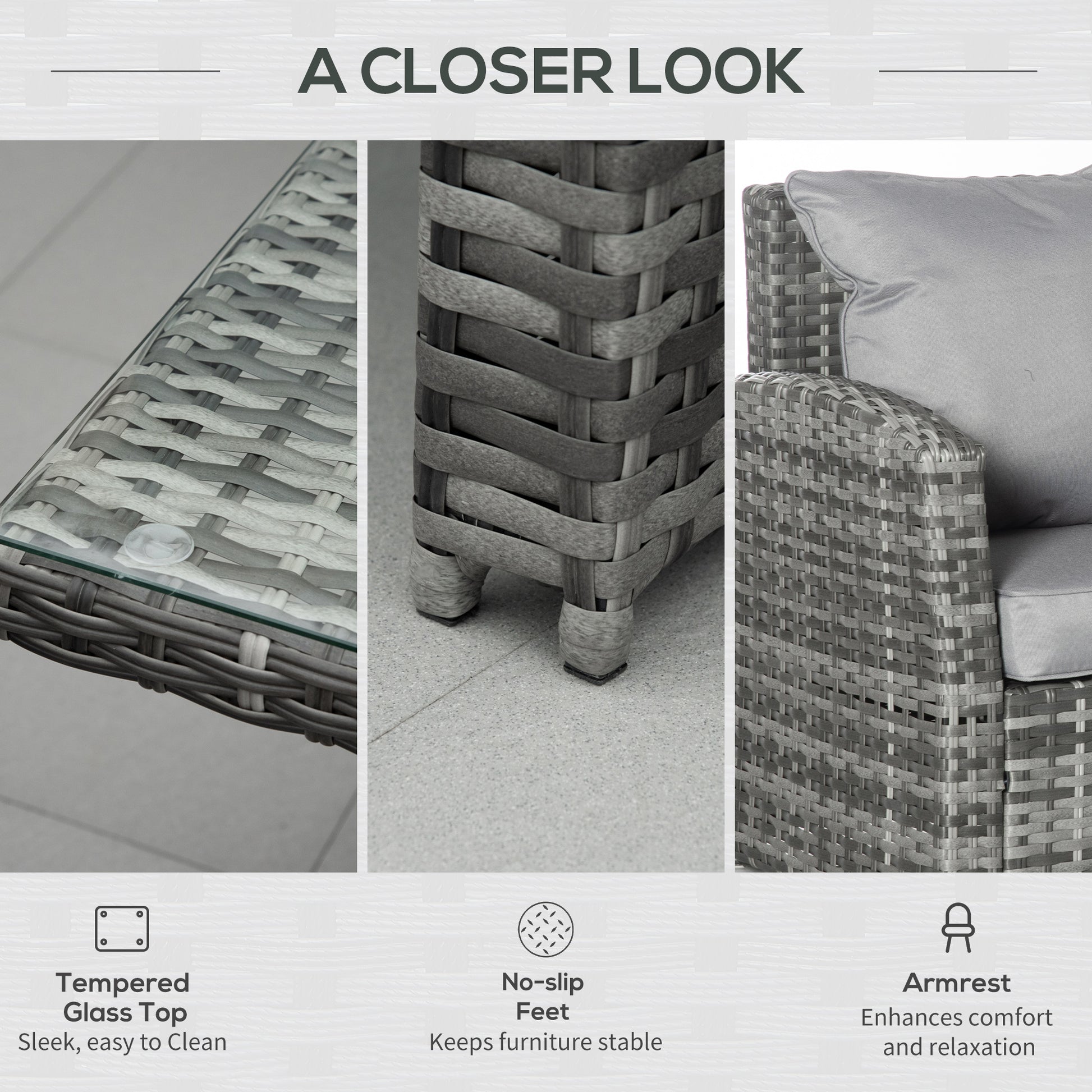 Outsunny 6-Seater PE Rattan Corner Dining Set Outdoor Garden Patio Sofa Table Furniture Set w/ Cushions, Grey