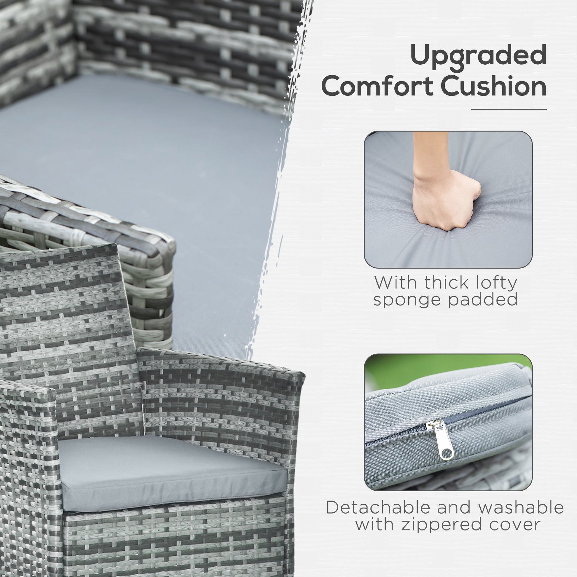Outsunny 6-Seater Rattan Dining Set Garden Furniture Patio Rectangular Table Cube Chairs Outdoor Fire Retardant Sponge Grey