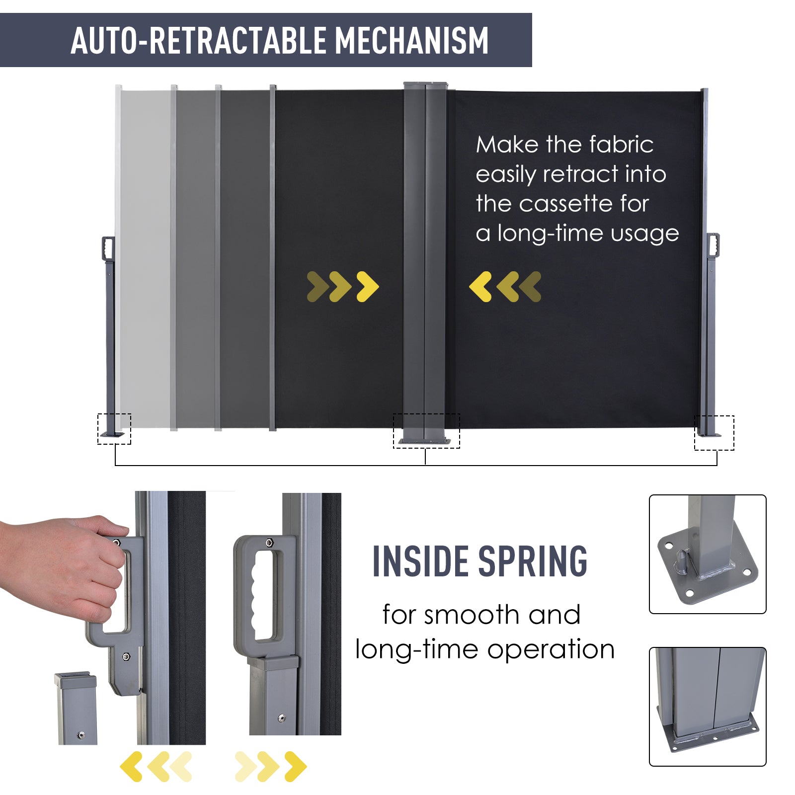 - Easy to use and set up: simply position and fix the two steel frames to cement/solid wood, where the canopy will extend and fix from a steel post to the other securely