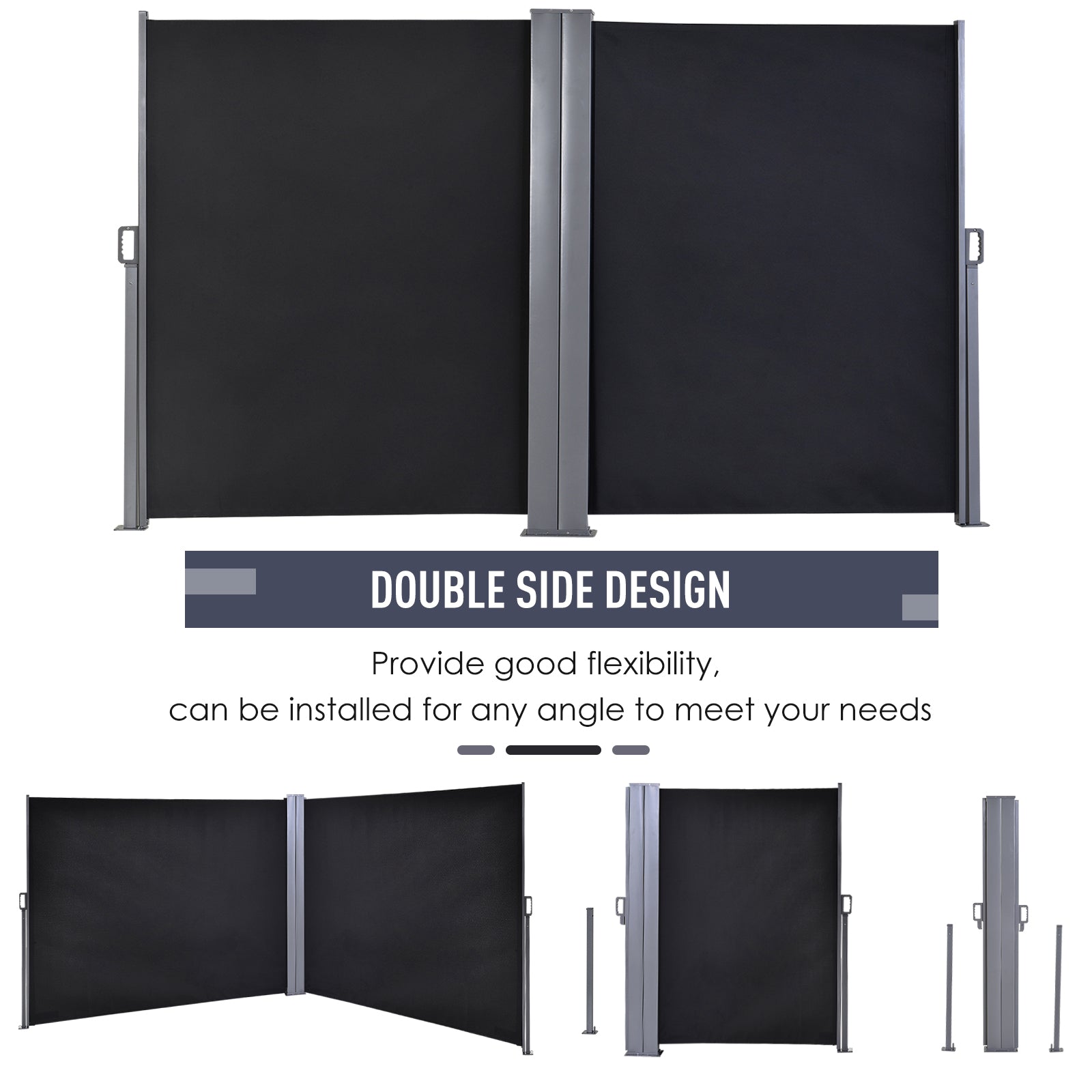 Outsunny 6 x 1.6 M Double Canopy Pull-Out Side Awning Sun Rain Outdoor Protection w/ Steel Frame Retractable Garden Privacy Home Commercial Dark Grey