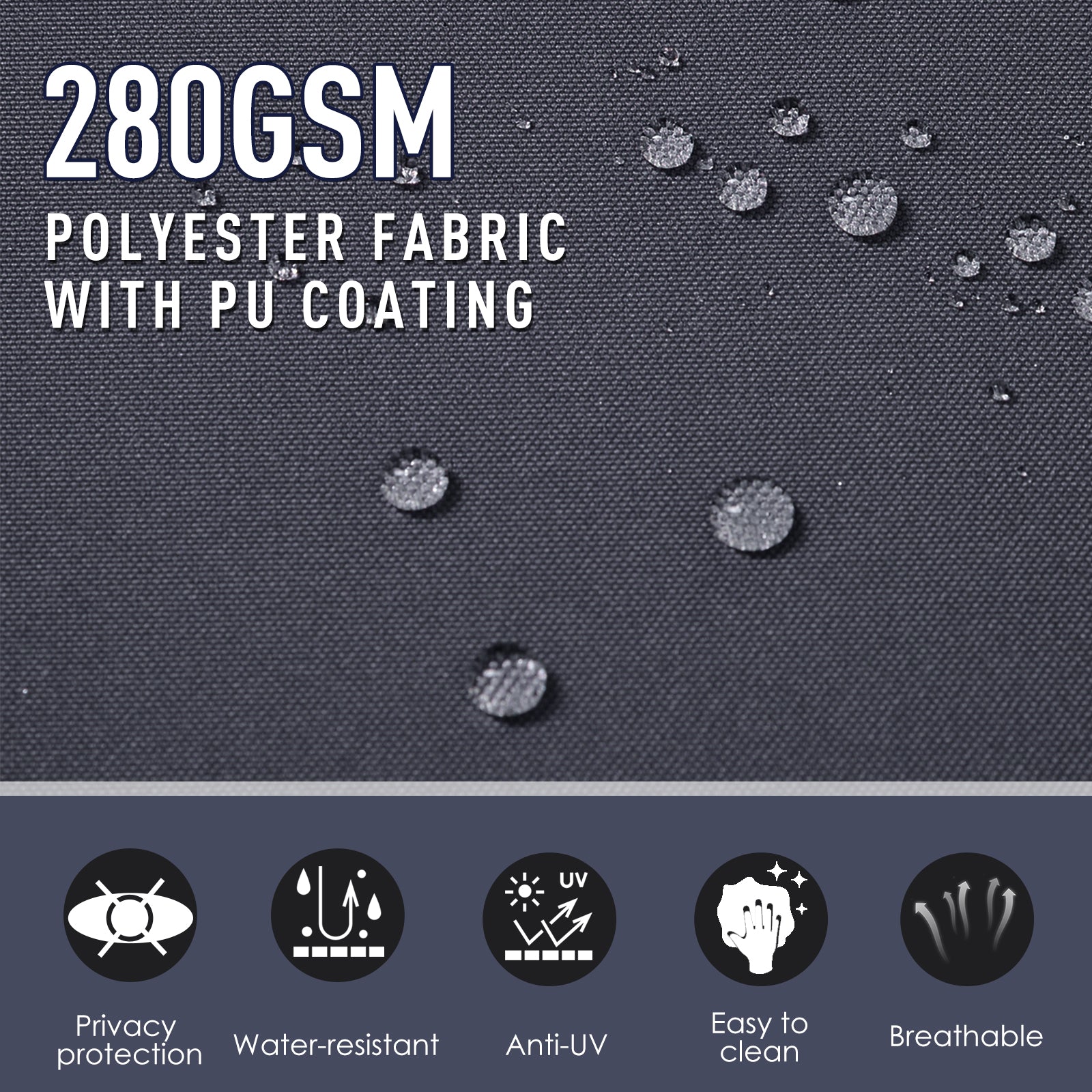 - 280gsm polyester canopy with PU coating is tough and resistant to mild weather