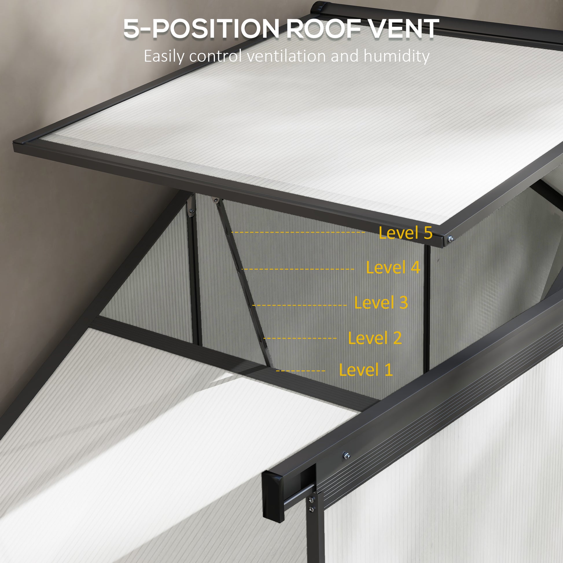 Outsunny 6 x 2.5ft Polycarbonate Greenhouse Walk-In Green House with Rain Gutter, Sliding Door, Window, Foundation, Dark Grey