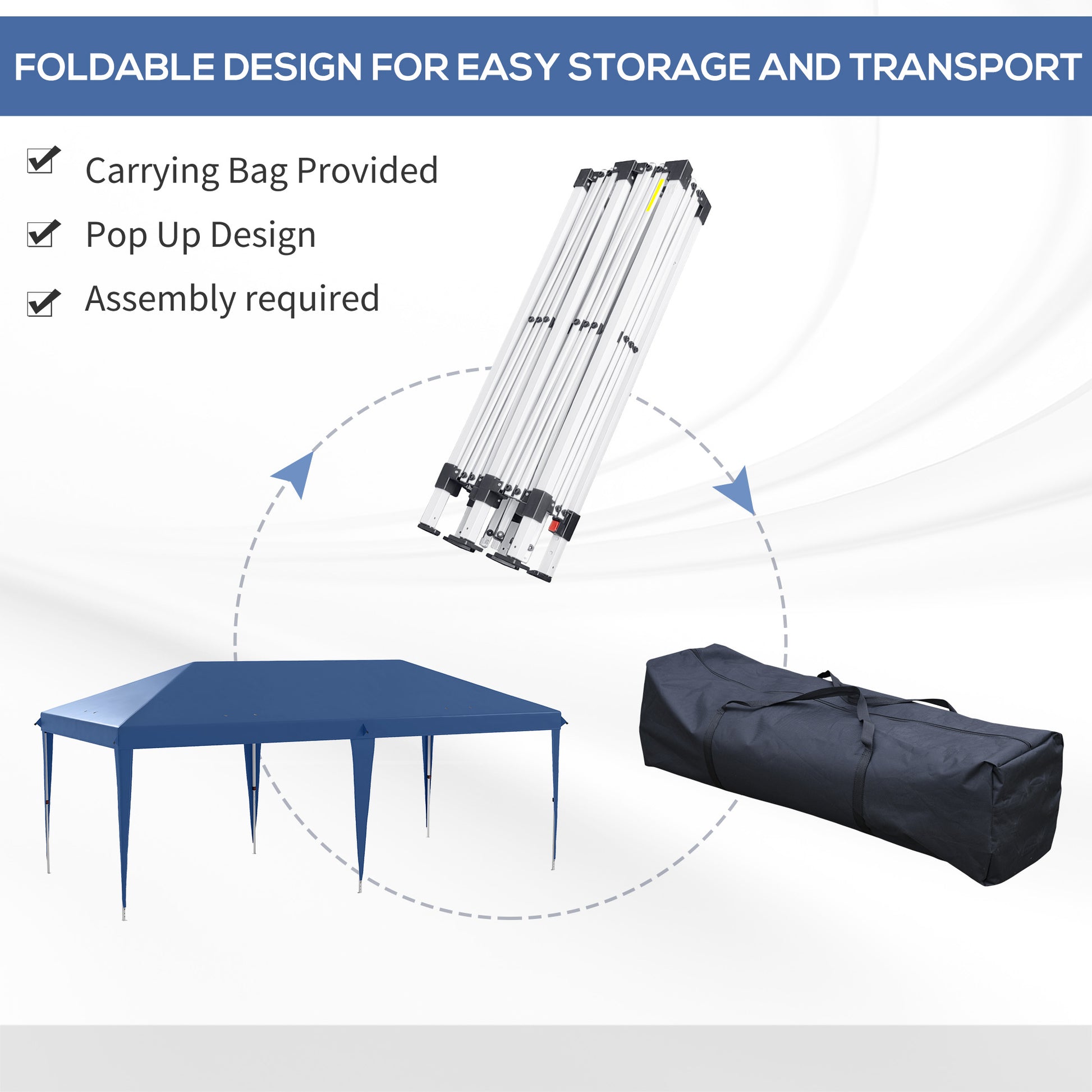 This Outsunny 6m x 3(m) pop up gazebo is a great way to create a shaded place when you require it. The garden shelter is made up of a powder-coated steel frame with a 210D Oxford cloth canopy cover. A foldable and easy-assembly design, it's perfect for temporary use: think for your outdoor gatherings - like garden parties, BBQs, receptions, car boot sales and more. Comes with ground pegs and guy ropes to secure to the ground for extra stability. Comes complete with a handy carry bag.