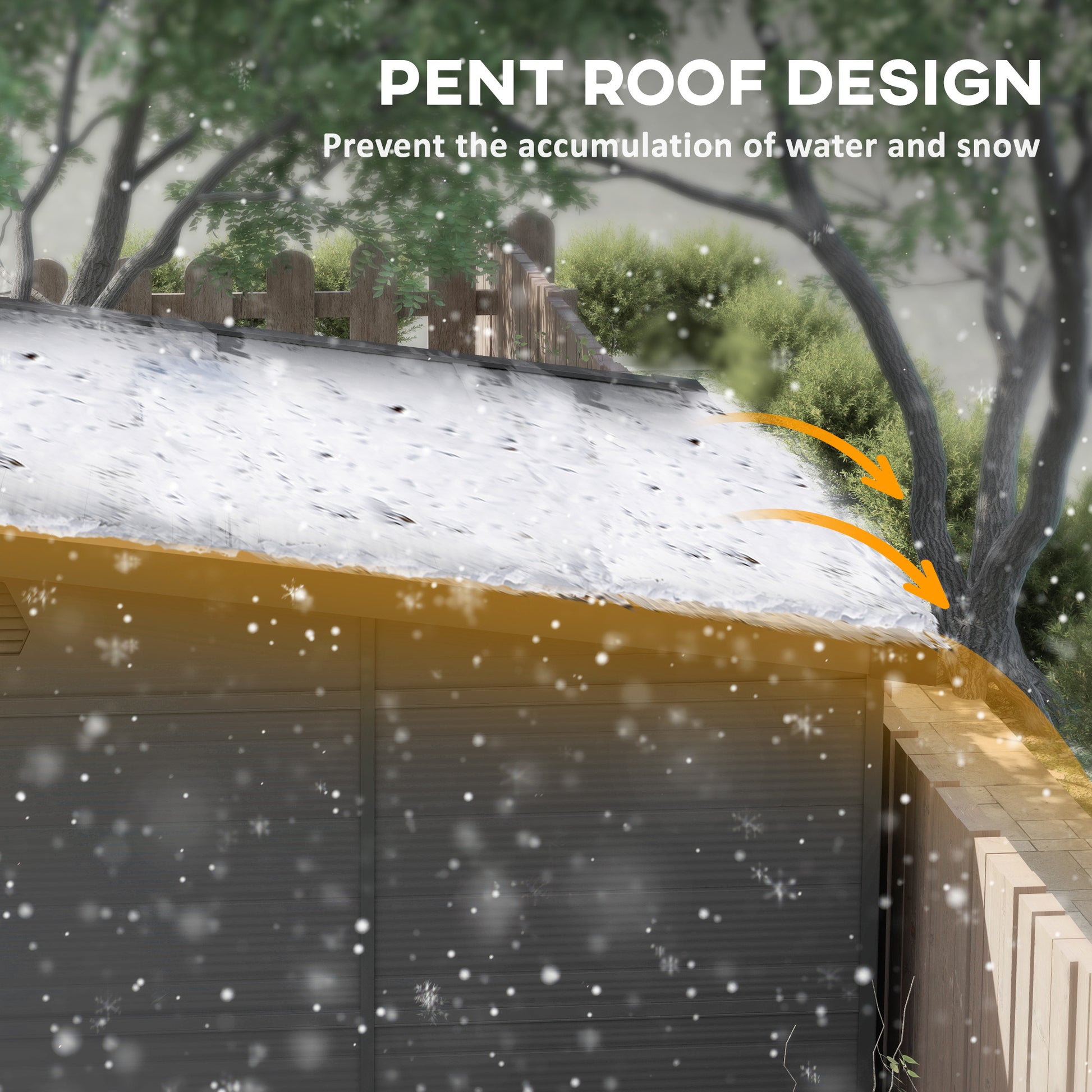 - Pent roof design prevents water and snow accumulation