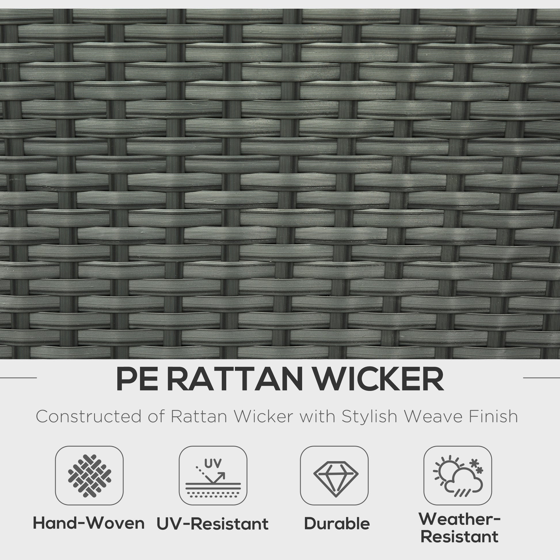 - Powder coated steel frame for strength, wrapped in UV and water-resistant PE wicker rattan