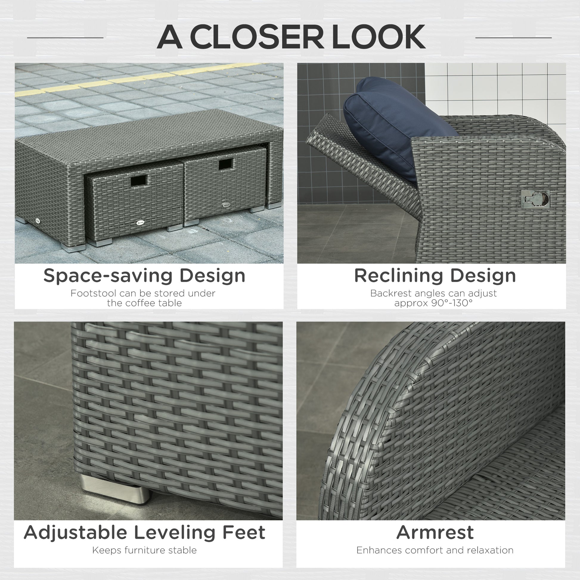 Outsunny 6 Piece Outdoor Rattan Wicker Furniture Set with 3-Seat Sofa, 2 Single Sofas, 2 Footstools and Coffee Table