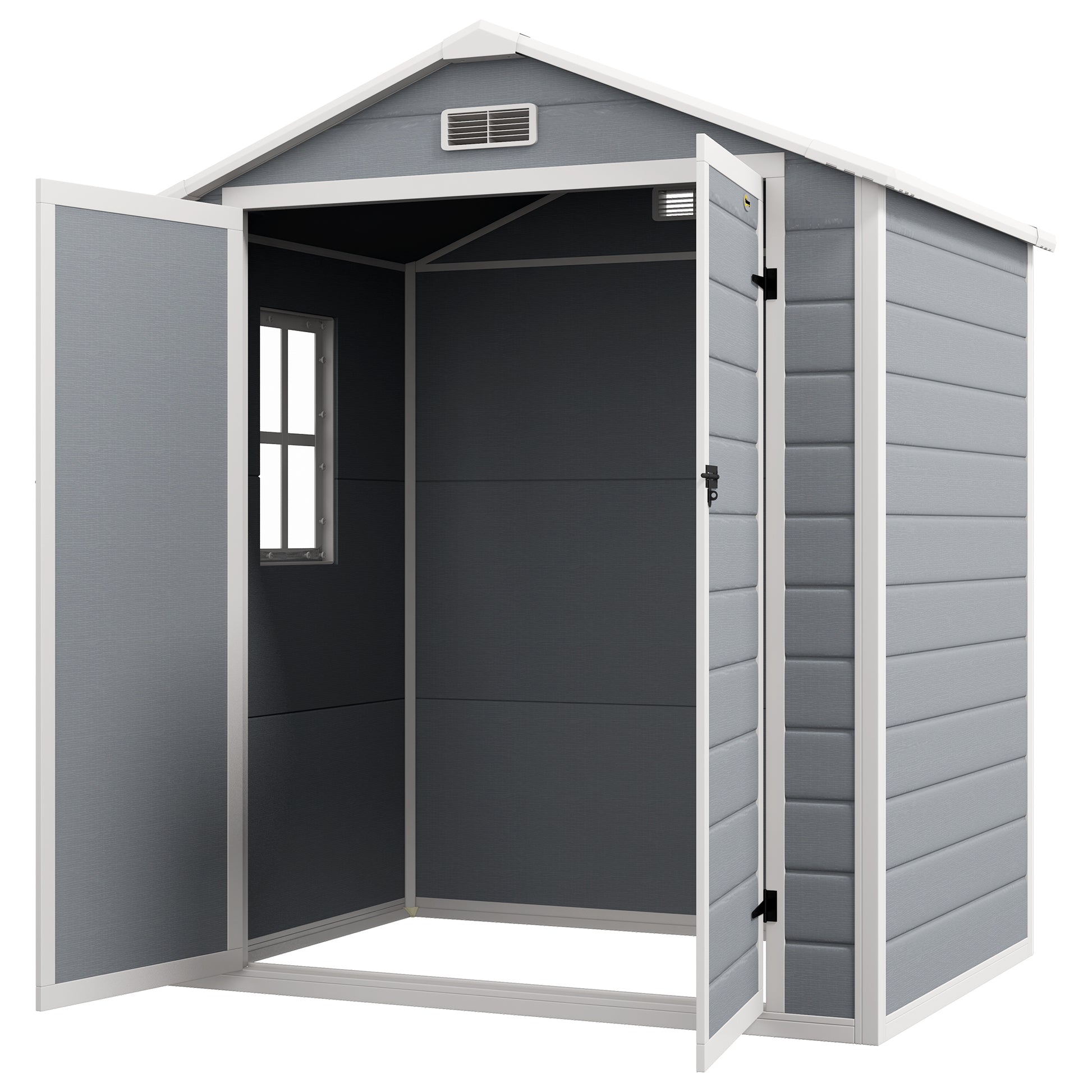 Outsunny 6'x4.5' Garden Storage Shed, Lockable Garden Shed with Double Doors, Window, Vent and Plastic Roof, Grey