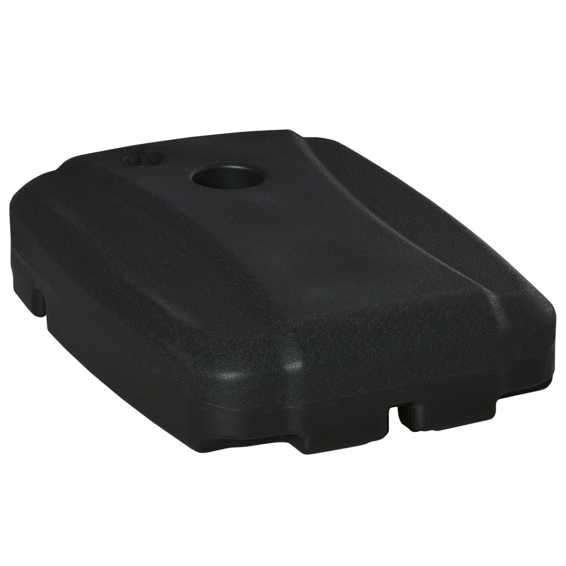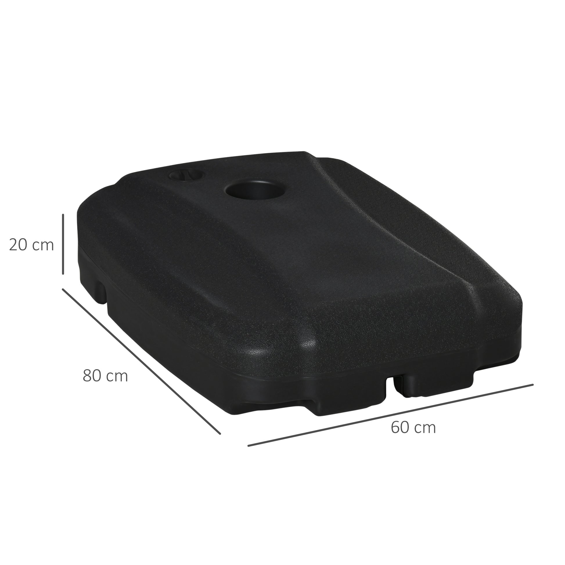 Ensure your Cantilever parasol is always held firmly in place with this garden parasol base from Outsunny. Made from strong HDPE plastic, it's a strong and durable piece, fitted with two wheels to roll easily when full. Fill it with 80kg water, 90kg sand, or a 100kg water/sand combination to ensure it keeps the umbrella standing steady. Whether it's for the garden, patio - or small café - this will ensure the parasol will be kept upright for as long as you need.