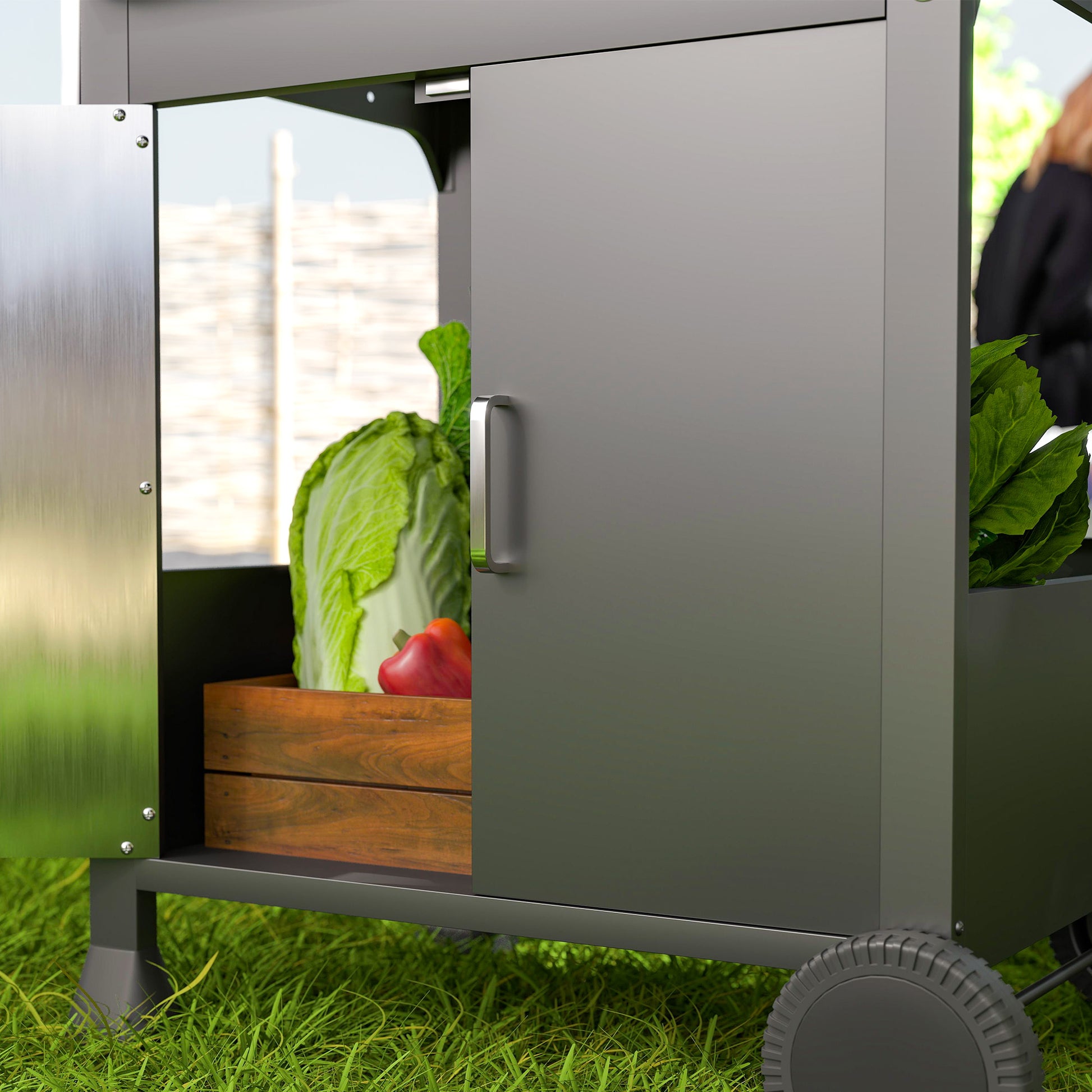 - Weight Capacity: (grill grate) 10 kg, (bottom shelf) 20 kg, (side shelf) 5 kg