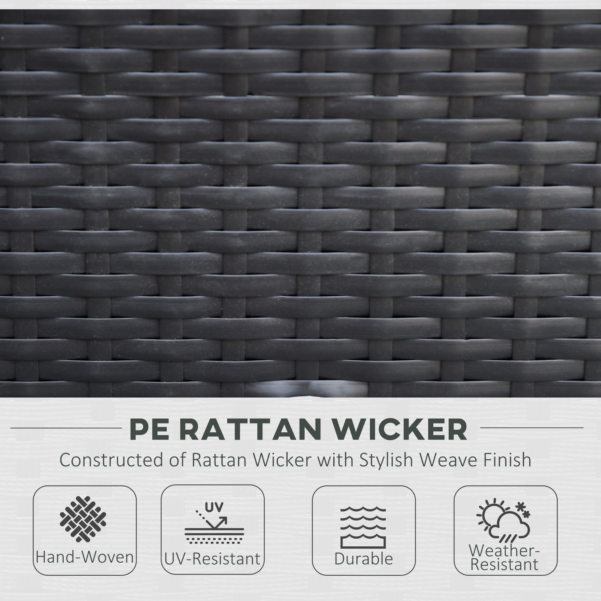 - Rust-resistant steel frame, wrapped in PE rattan for double the durability