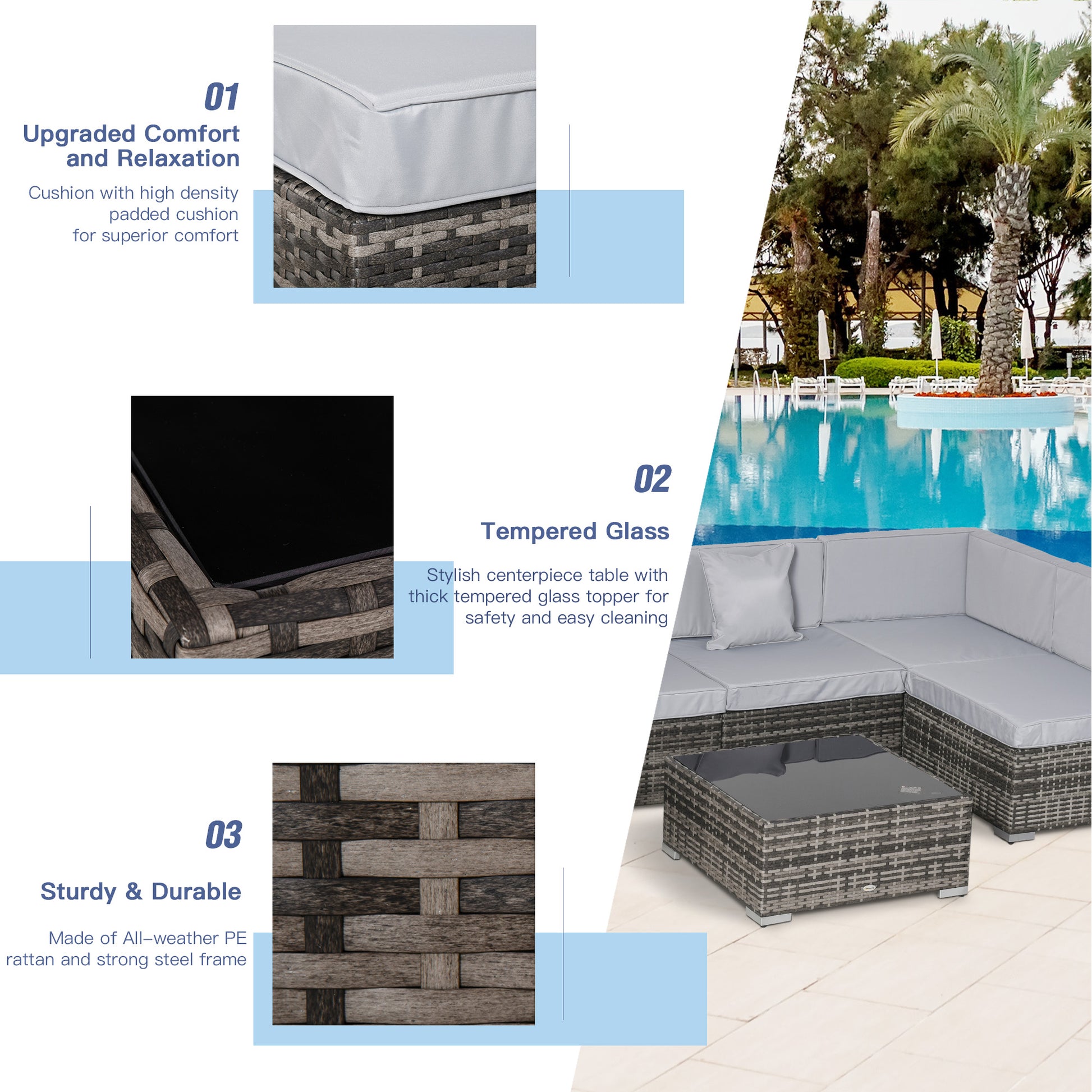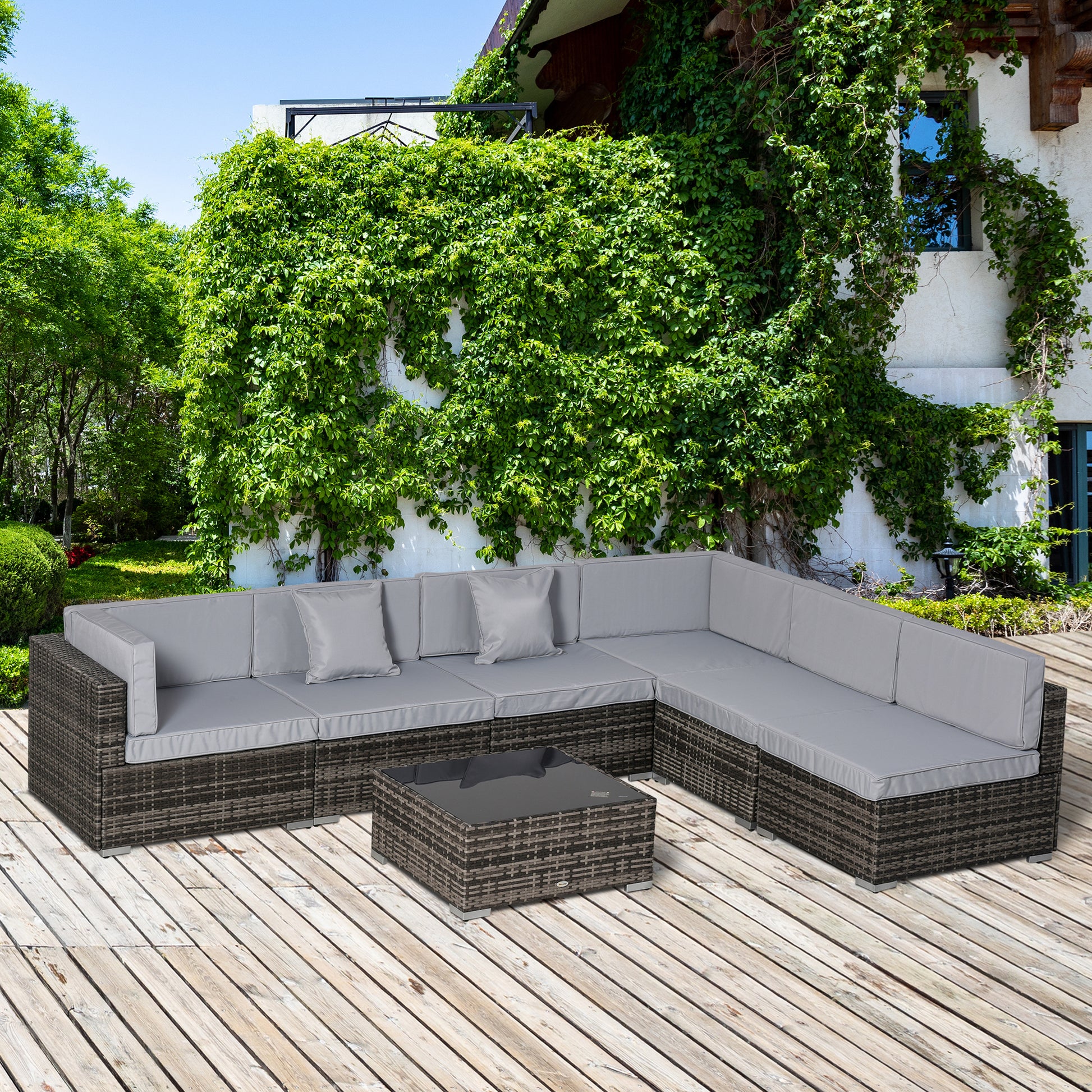 Outsunny 7 Piece Garden Rattan Furniture Set Patio Outdoor Sectional Wicker Weave Sofa Seat Coffee Table w/ Cushion and Pillow Buckle Structure
