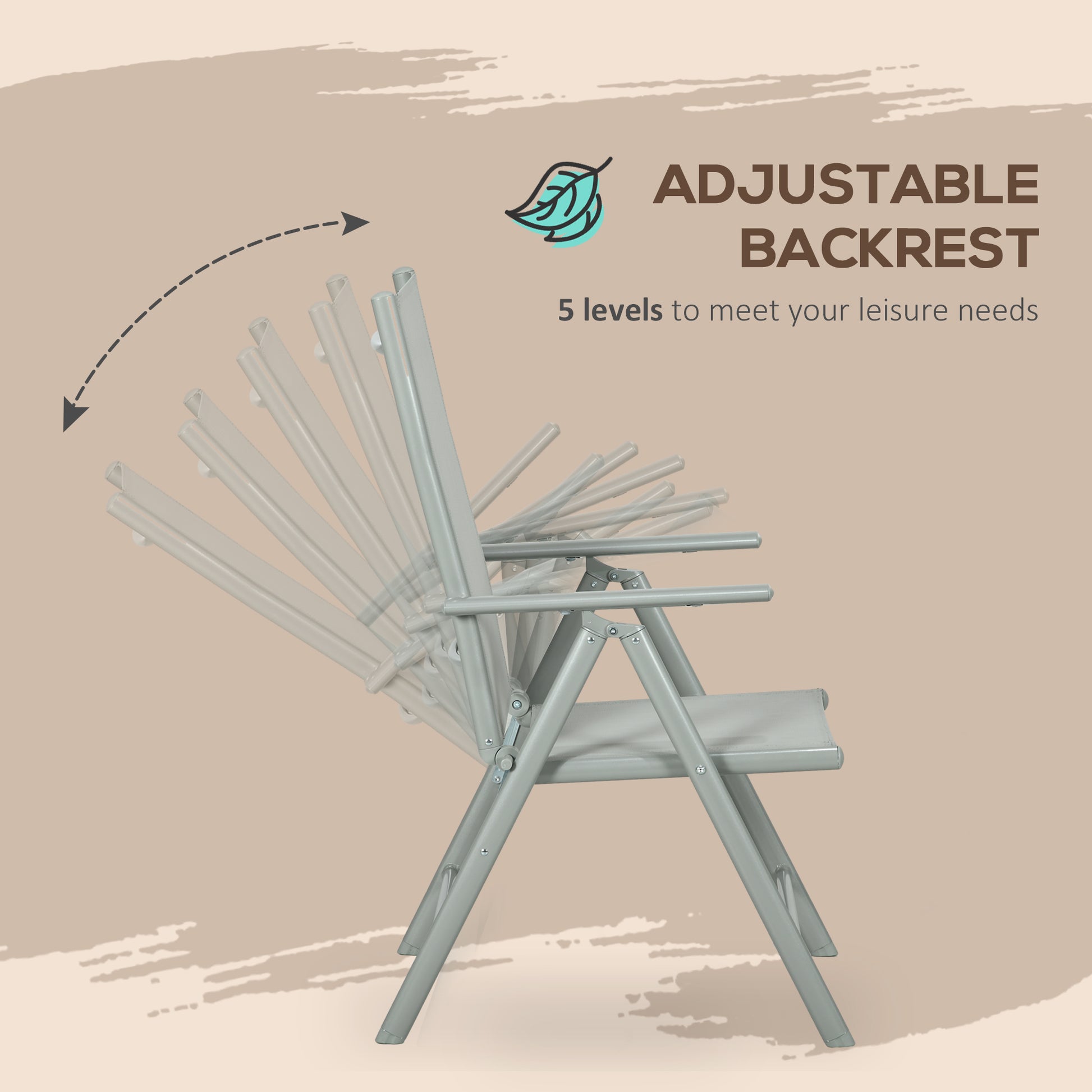 Outsunny 7 Piece Garden Dining Set, Outdoor Table and 6 Folding and Reclining Chairs, Aluminium Frame, Tempered Glass Top Table, Texteline Seats, Grey