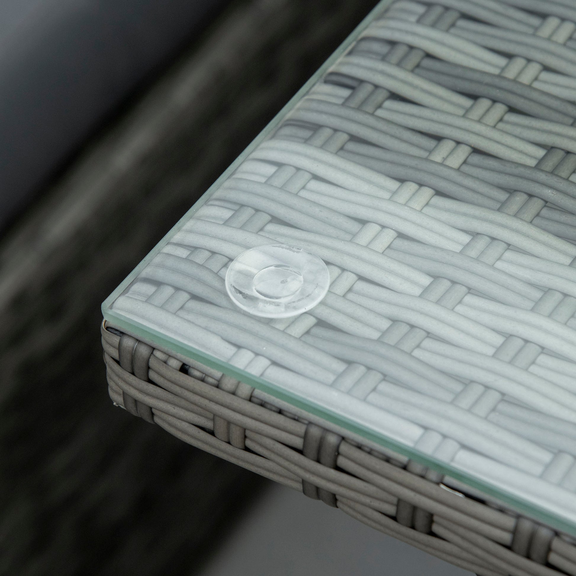 Outsunny 7 Piece Rattan Garden Furniture Set, 10-Seater Sofa Sectional with Cushioned Sofa Seat, Footstools and Expandable Glass Table for Yard Grey