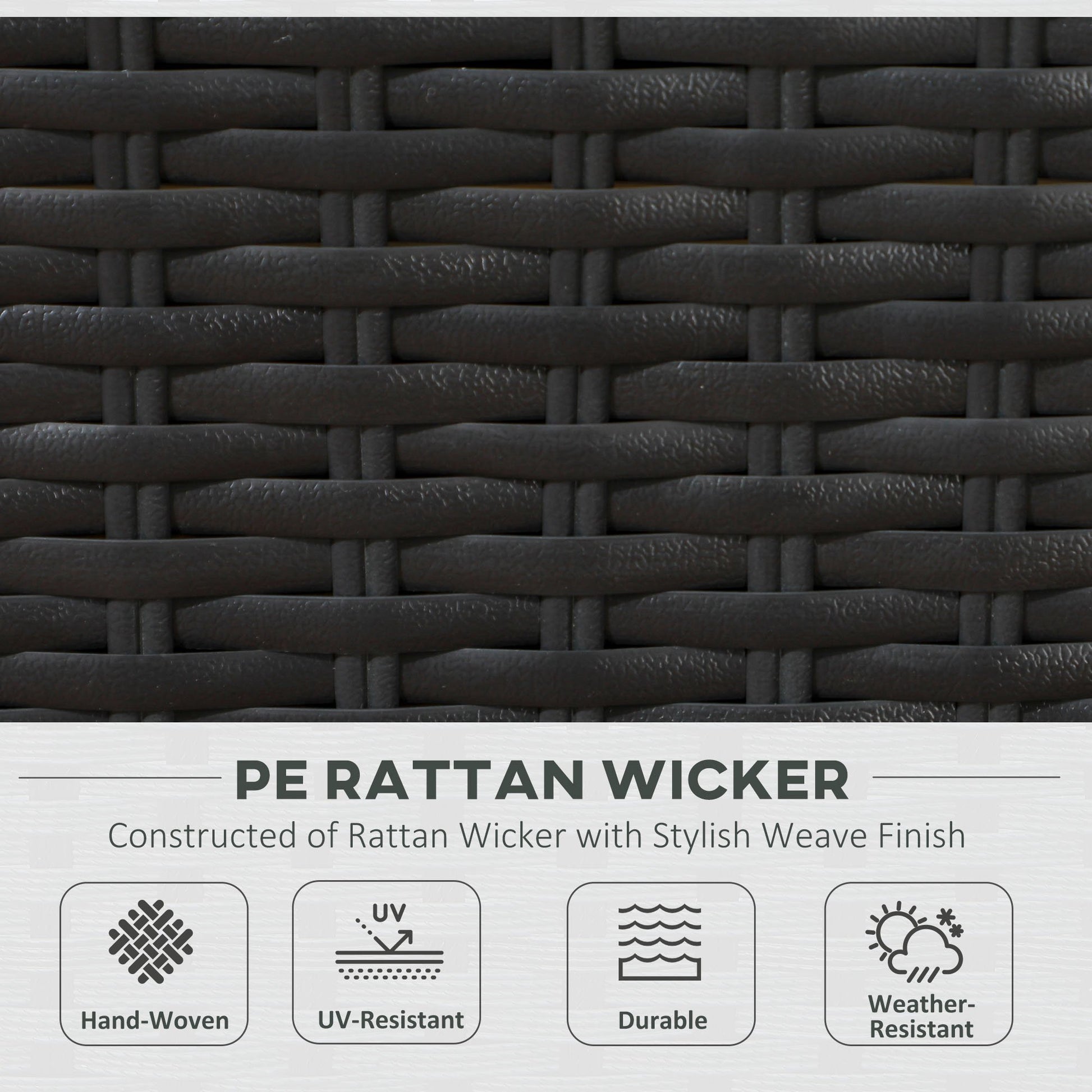 Bring beauty and comfort into your garden with Outsunny patio set. The steel frame of each piece means a strong, supportive structure; wrapped in PE wicker, the rattan top offers extra protection and style. Padded seat and back cushions provide comfort, with two extra pillows included. The rattan corner sofa is easy to assemble, with the buckle fastenings keeping all pieces secure. Set is completed with a safe tempered glass top on the table for a sleek look.