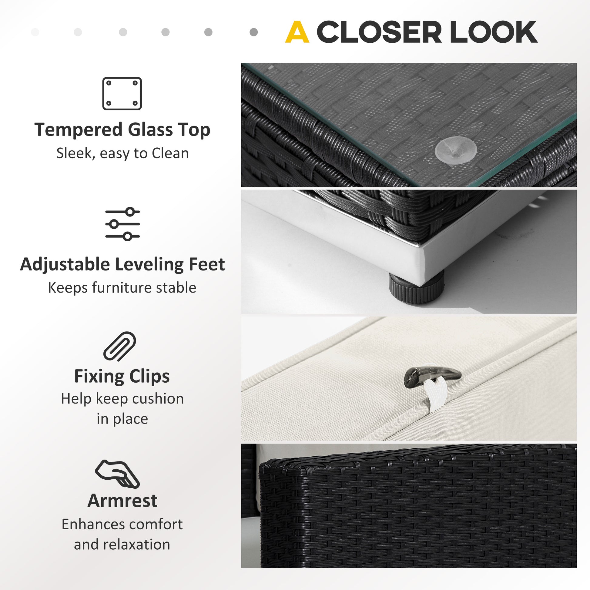 - Material Used: PE rattan, Aluminium frame, Tempered glass