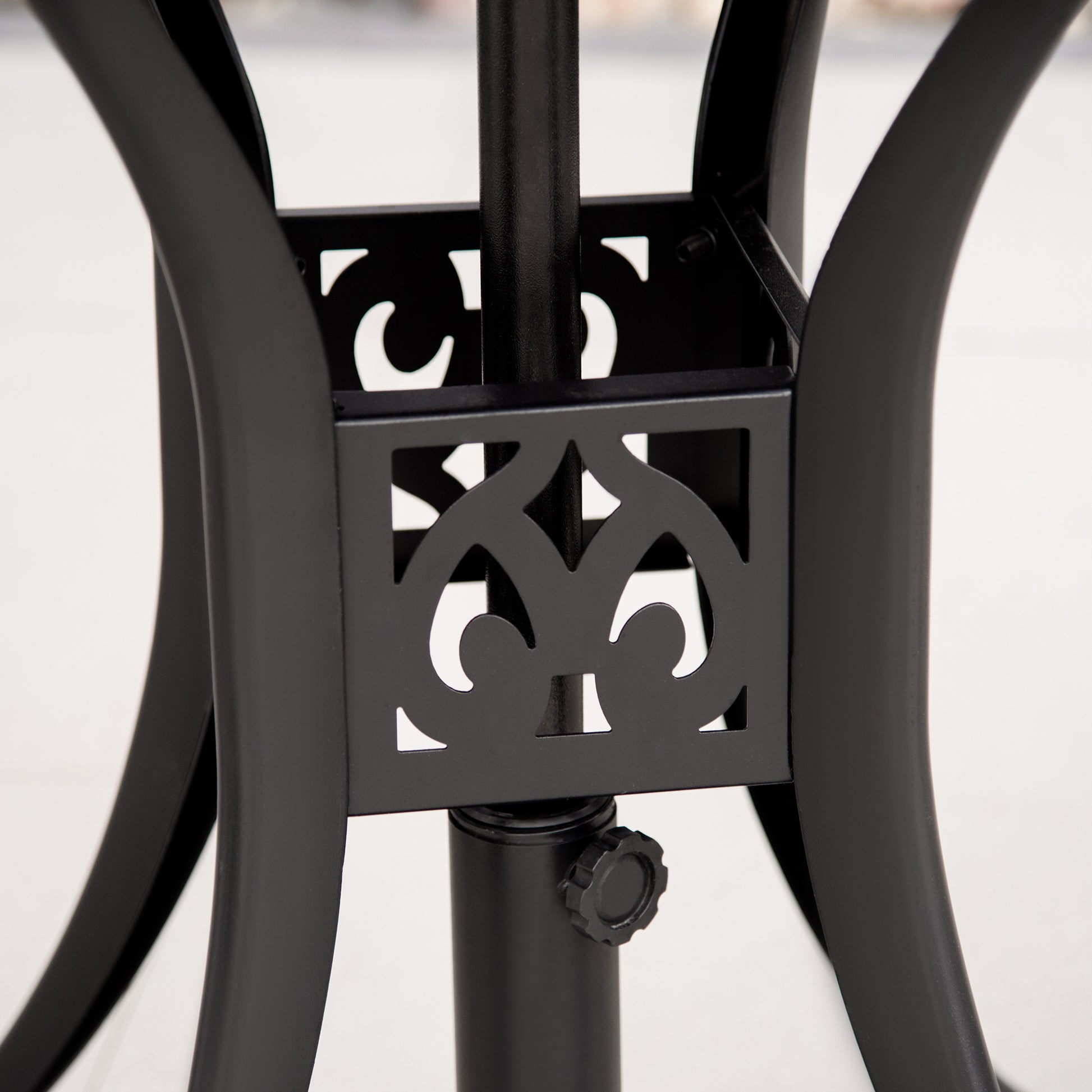 Outsunny 78cm Round Garden Dining Table With Parasol Hole Antique Cast Aluminium Outdoor Table, Black