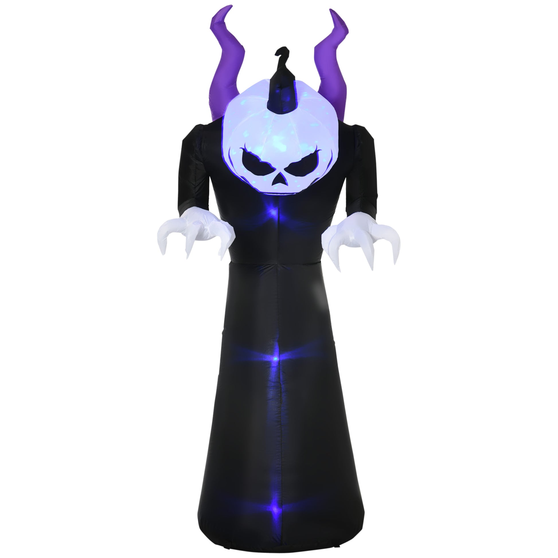 7ft Inflatable Halloween Ghost with Horns, Blow-Up Outdoor LED Display with Flame Effect for Garden, Lawn, Party, Holiday