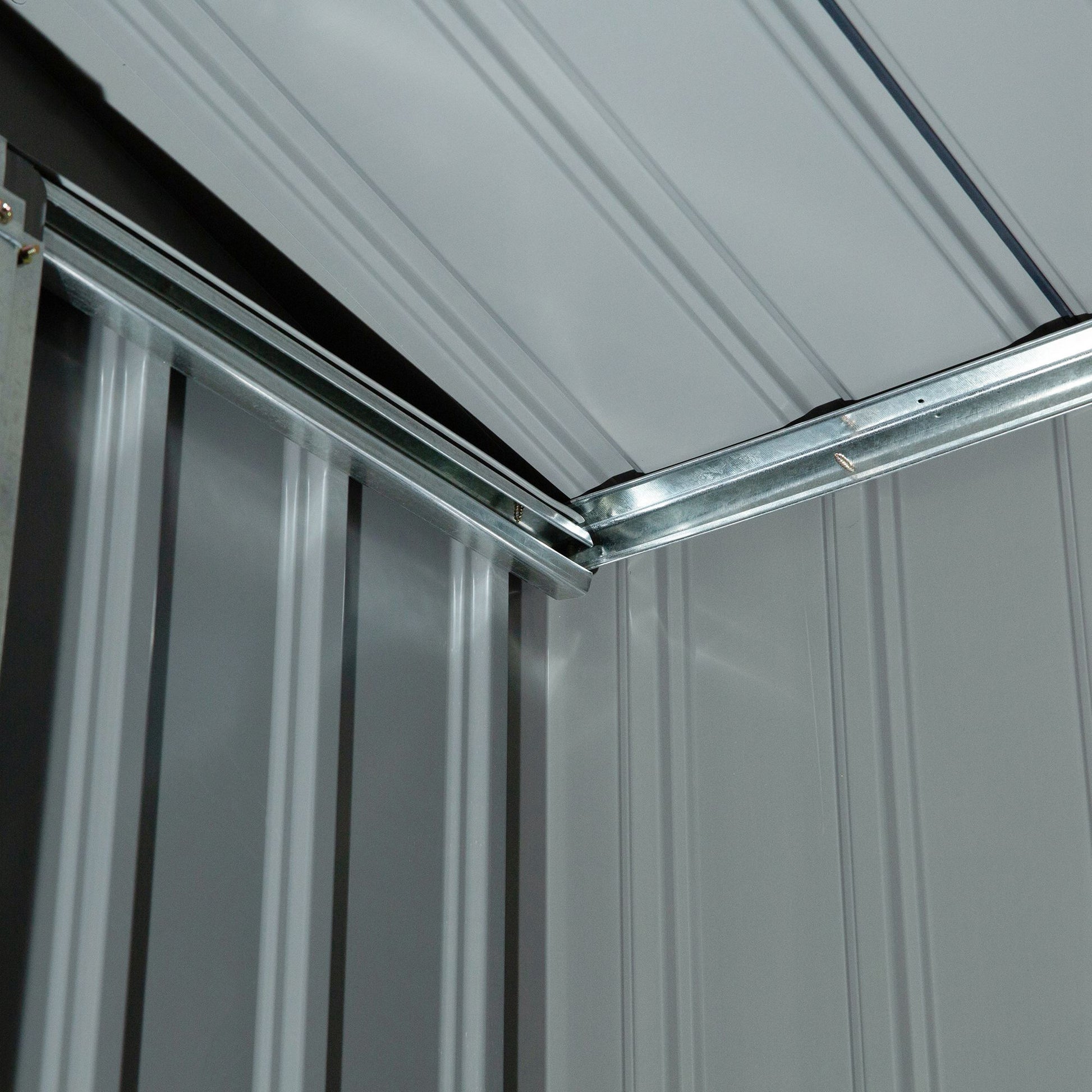 Keep your garden equipment and outdoor essentials locked away securely with this metal shed from Outsunny. Built from galvanised steel for strength, it comes with a lockable double sliding door on the front for easy access and four vents for air to circulate and prevent moisture buildup. The garden tool shed is finished with a protective weather coating and a floor foundation for it to stand level on the ground.
