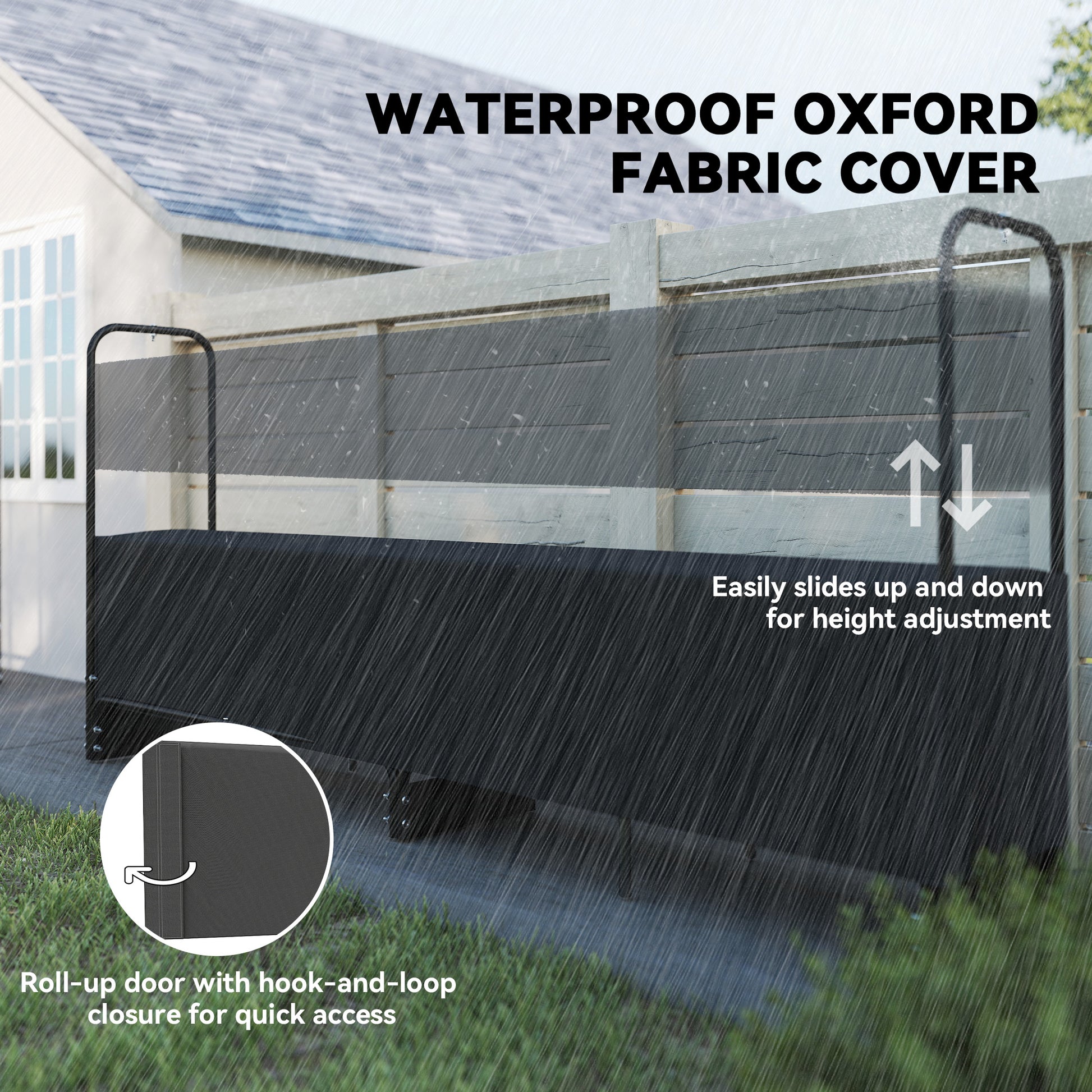 8.5ft Firewood Rack, Heavy Duty Log Storage Holder with Waterproof 600D Oxford Log Cover for Fireplace Fire Pits Outdoor Patio Wood Storage, 300 kg Large Capacity, Black