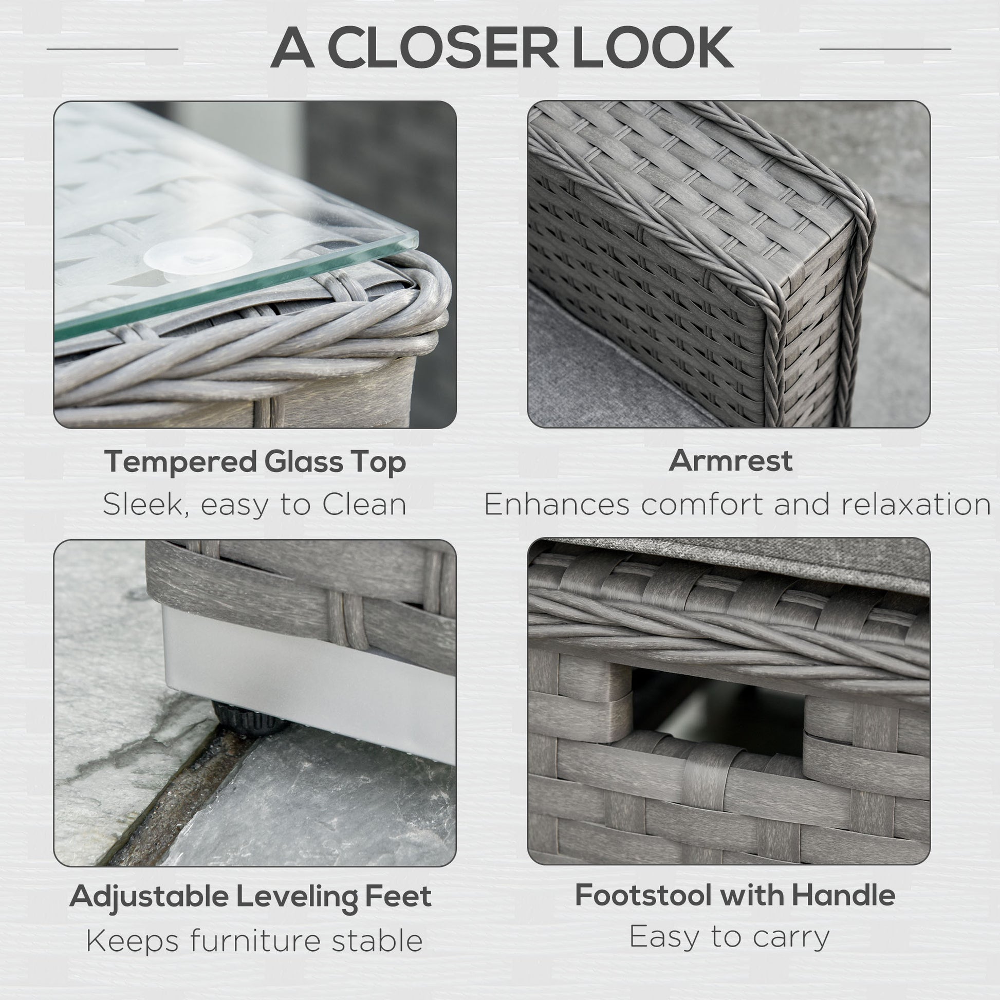 Outsunny 8-Seater PE Rattan Garden Corner Sofa Set Outdoor Wicker Conservatory Furniture Coffee Table Footstool, Grey