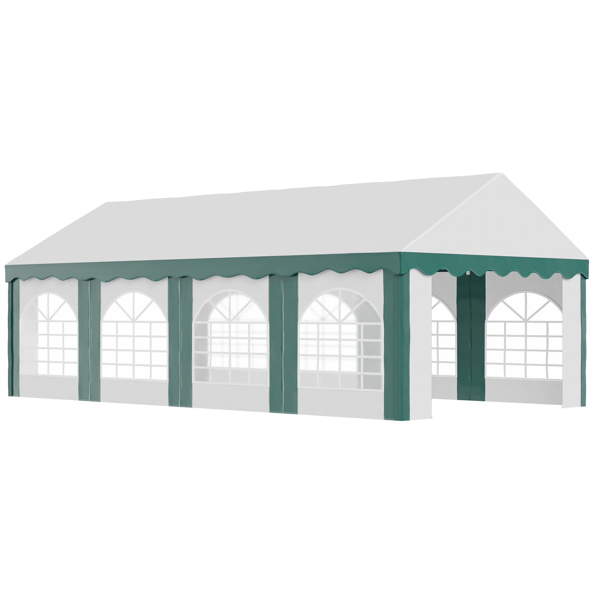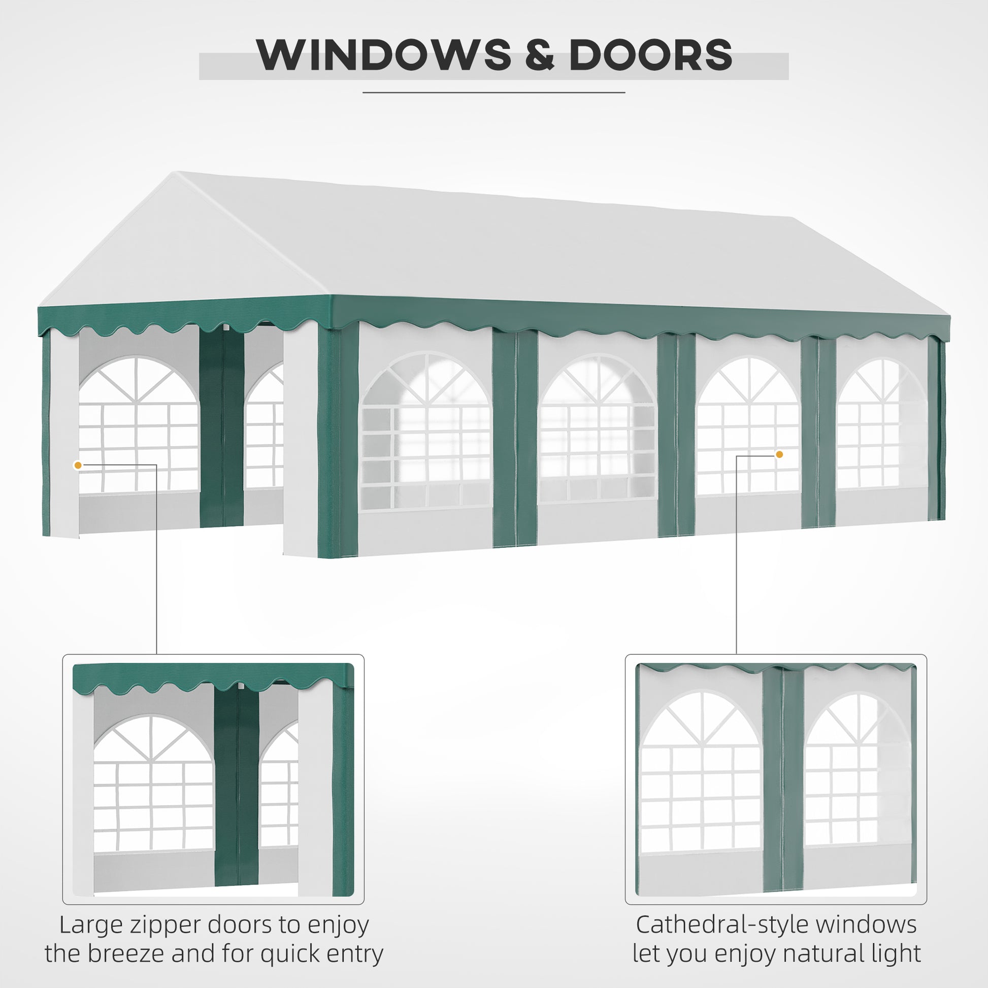Outsunny 8 x 4m Garden Gazebo with Sides, Galvanised Marquee Party Tent with Eight Windows and Double Doors, for Parties, Wedding and Events