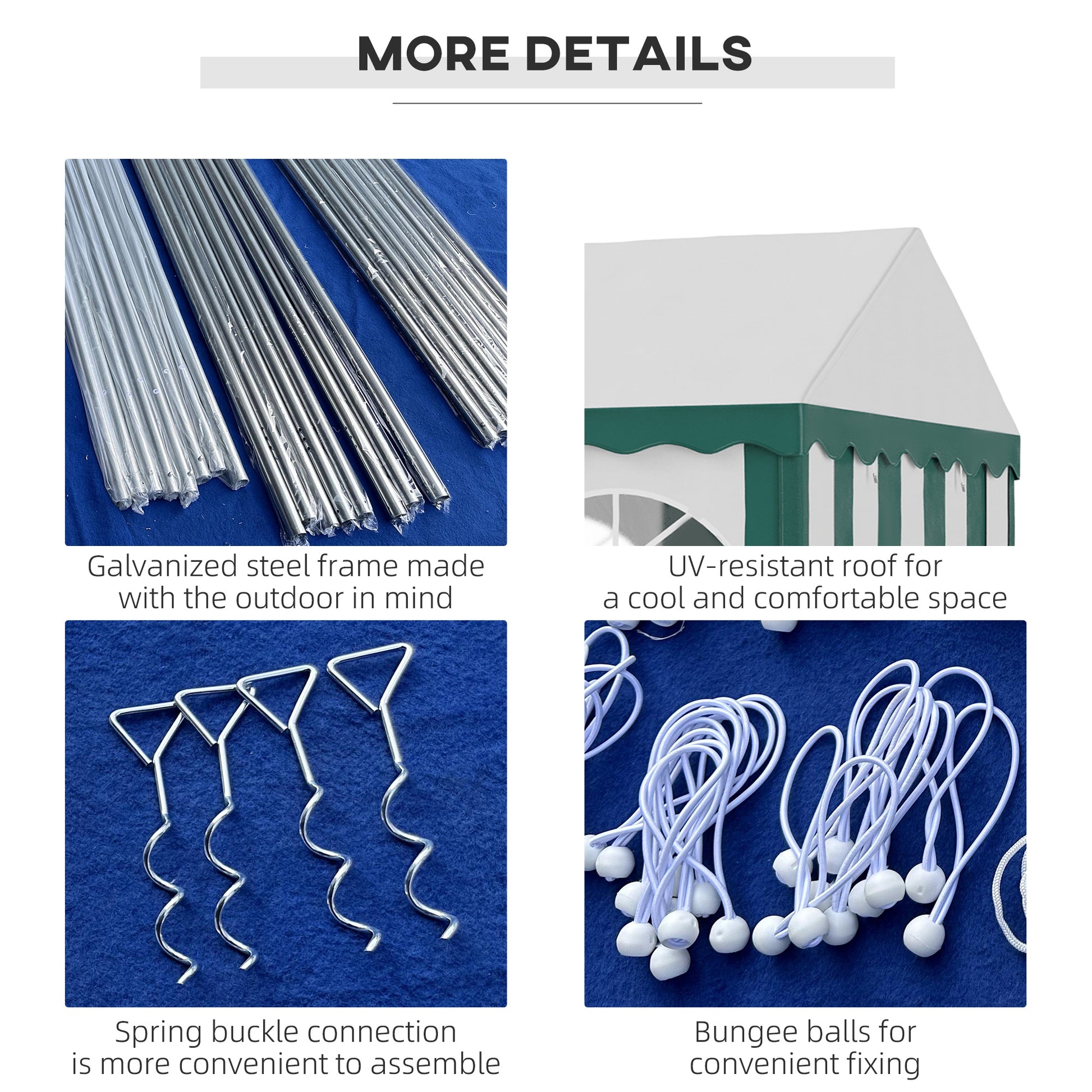 For your outdoor gatherings this season, say hello this 8 x 4m marquee gazebo with sides, from Outsunny. A galvanised steel frame means a strong, sturdy core; it's fitted with a thick plastic canopy for a safe inner shelter. The roof shields you inside from direct sunlight and light wind and rain - ideal for keeping you and guests sheltered when needed. All the walls can be taken off when you want to open up on hotter days - with windows to allow sunlight in when they're fixed in place.