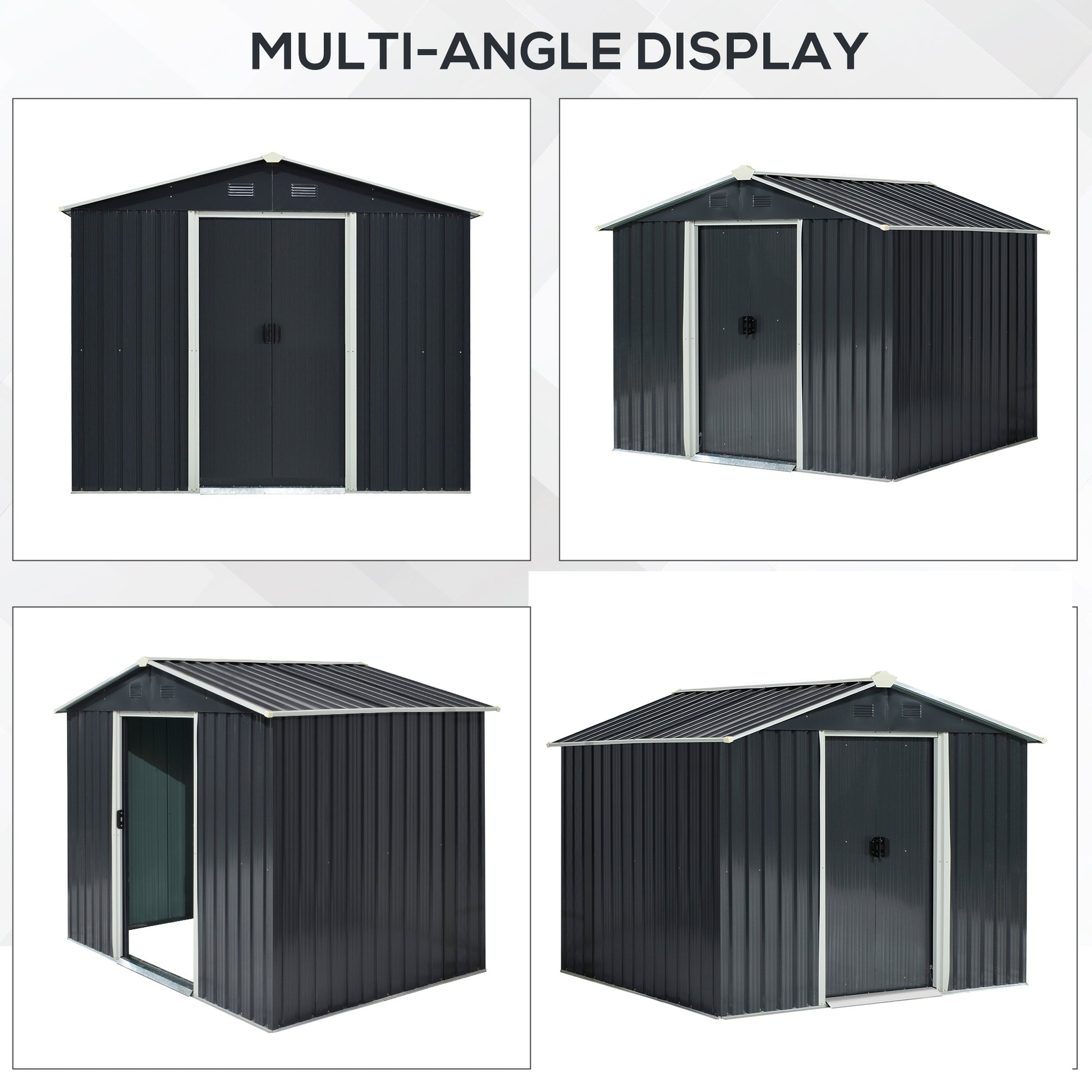 Outsunny 8 x 6ft Garden Storage Shed Double Door Ventilation Windows Sloped Roof Outdoor Equipment Tool, Grey