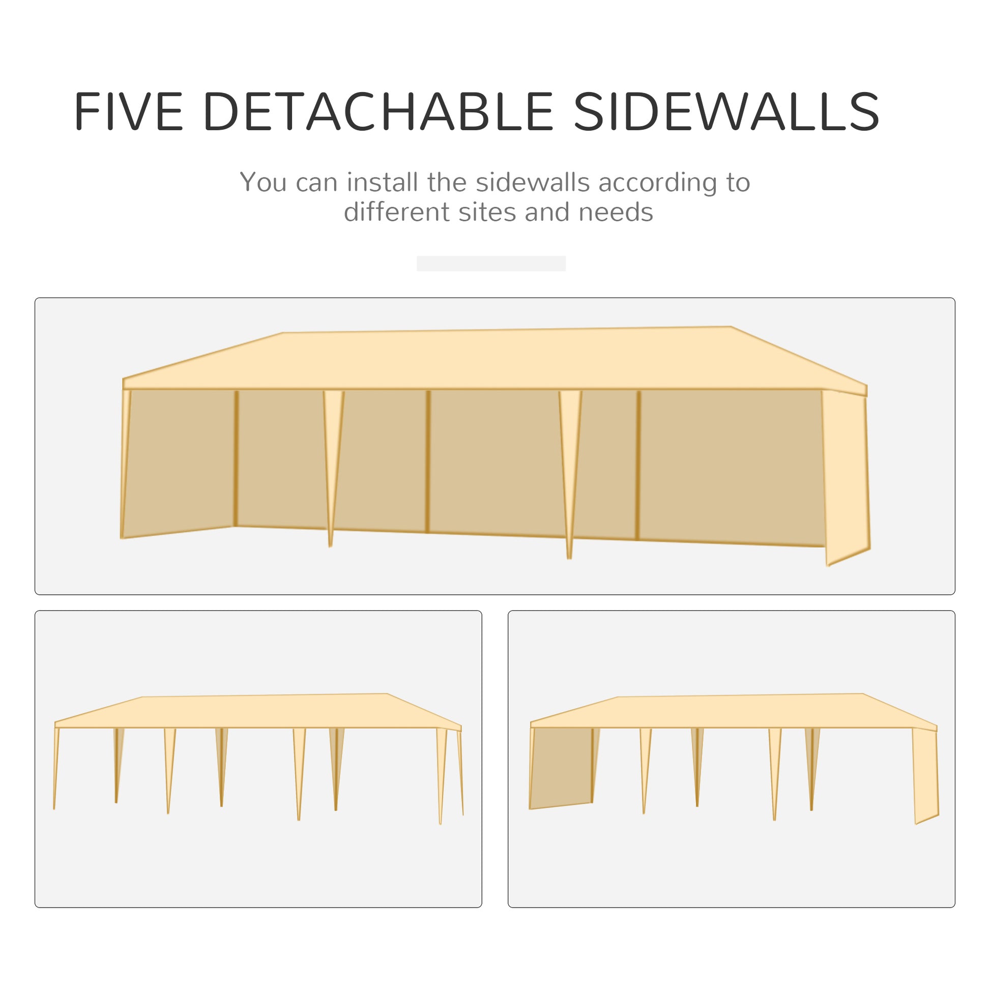 This party gazebo is a great item to have when entertaining, made with a solid steel construction and a high quality 90g/㎡ PE cloth. It comes complete with 8 pull ropes and 16 ground anchors. This will make the gazebo more stable and perfect for use in windy conditions. The marquee gazebo with sides can be used during many events like weddings, camping, parties and even picnics.