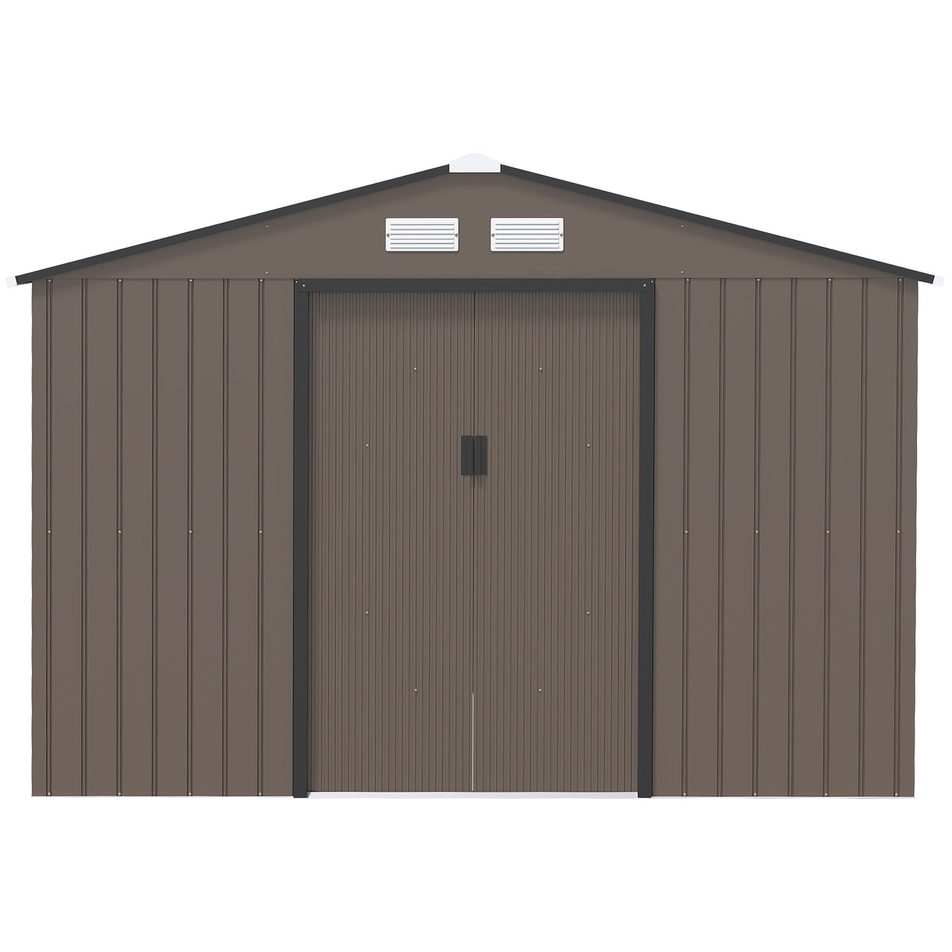 Outsunny 9 x 6FT Garden Metal Storage Shed Outdoor Storage Shed with Foundation Ventilation & Doors, Brown