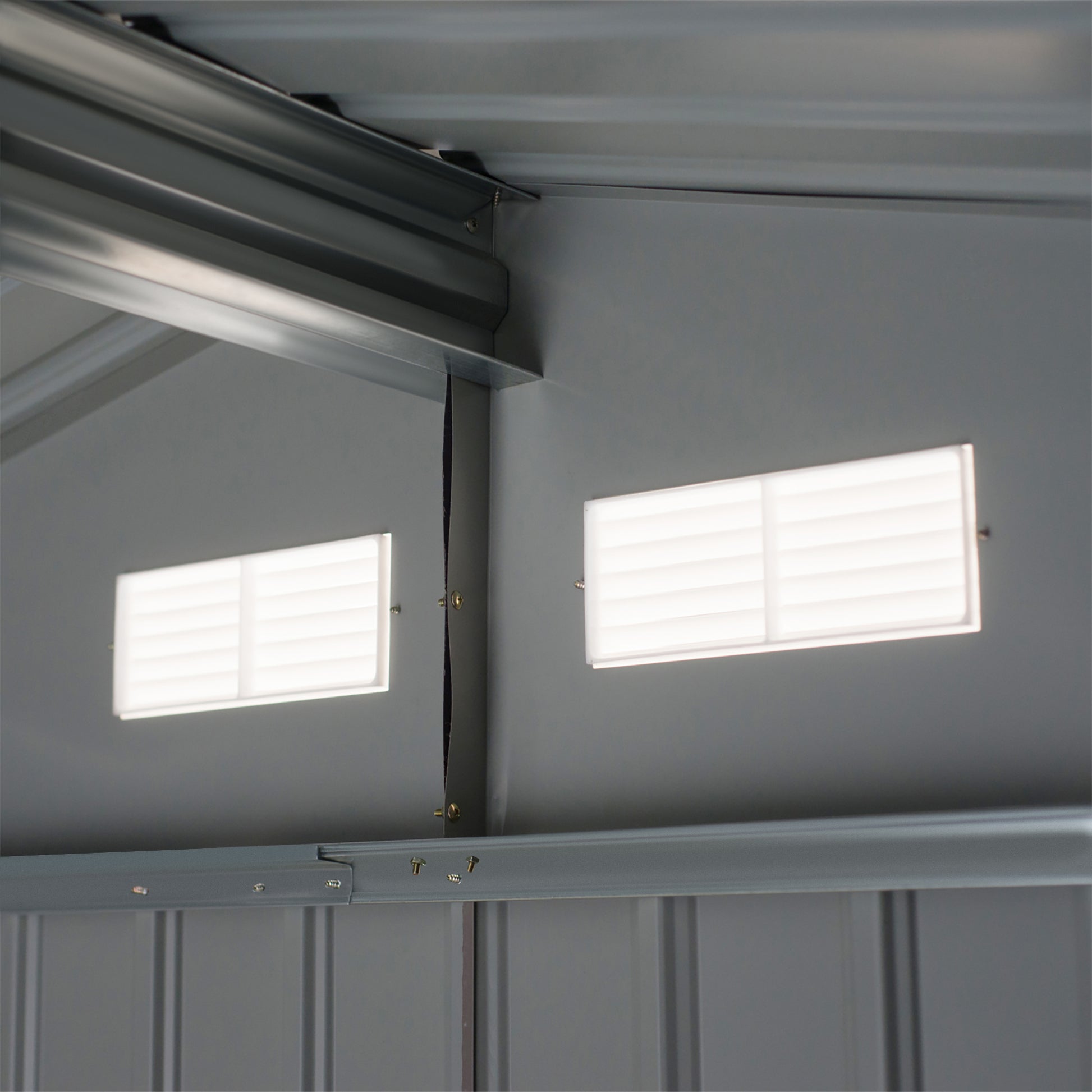 Keep your garden equipment and outdoor essentials locked away securely with this metal shed from Outsunny. Built from galvanised steel for strength, it comes with a lockable double sliding door on the front for easy access and four vents for air to circulate and prevent moisture buildup. The garden tool shed is finished with a protective weather coating and a floor foundation for it to stand level on the ground.