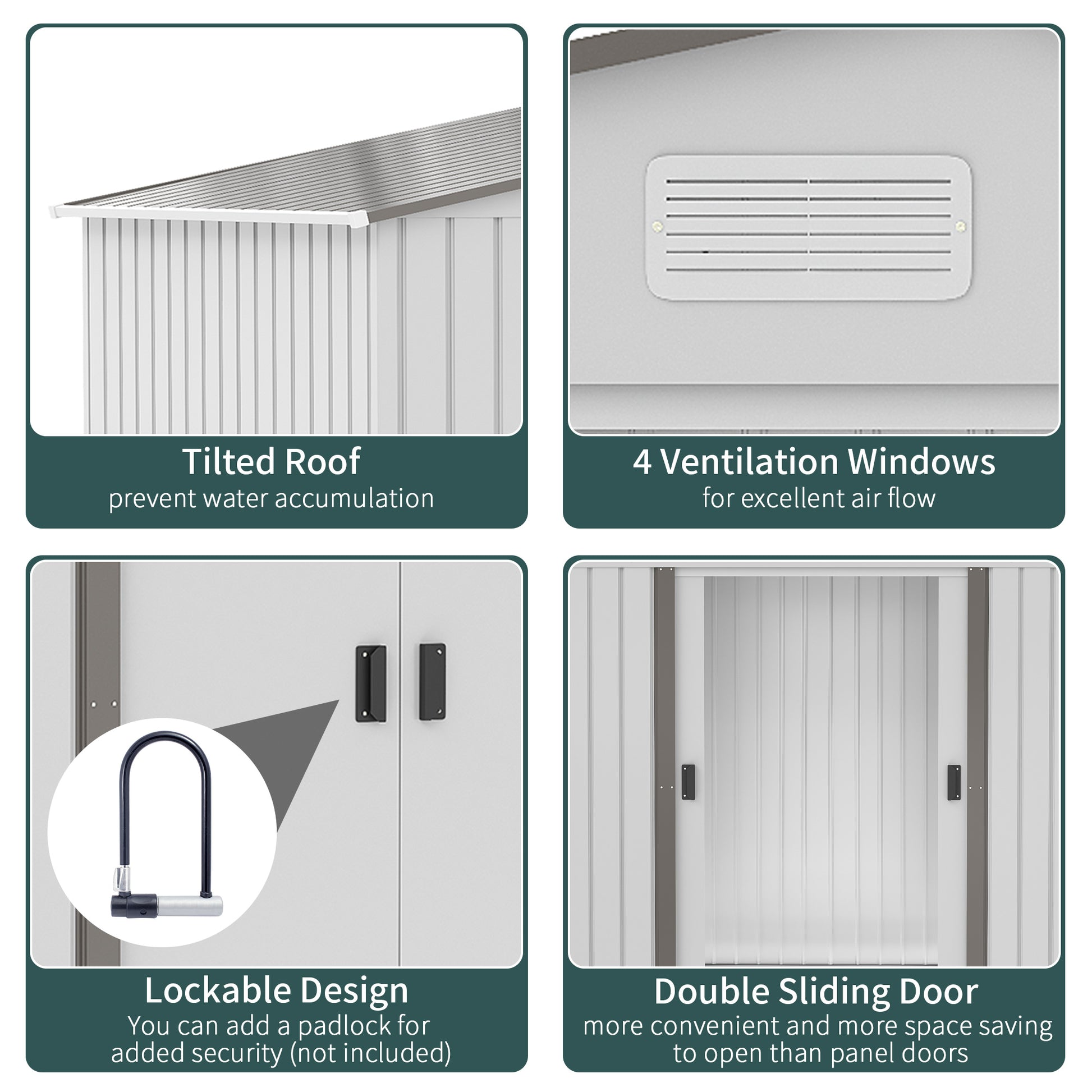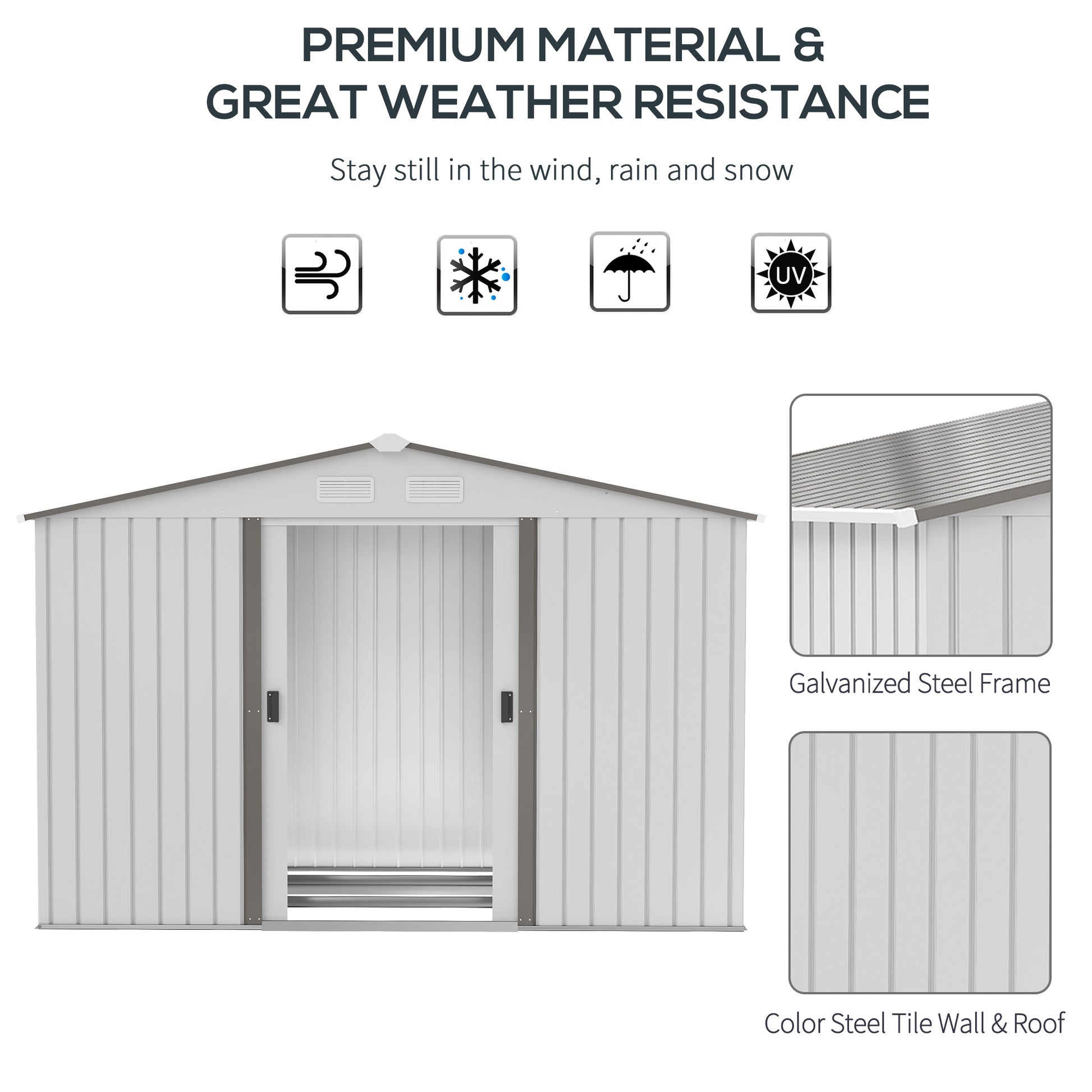 Outsunny 9 x 6FT Garden Storage Shed, Metal Outdoor Storage Shed House with Floor Foundation, Ventilation & Doors, Grey