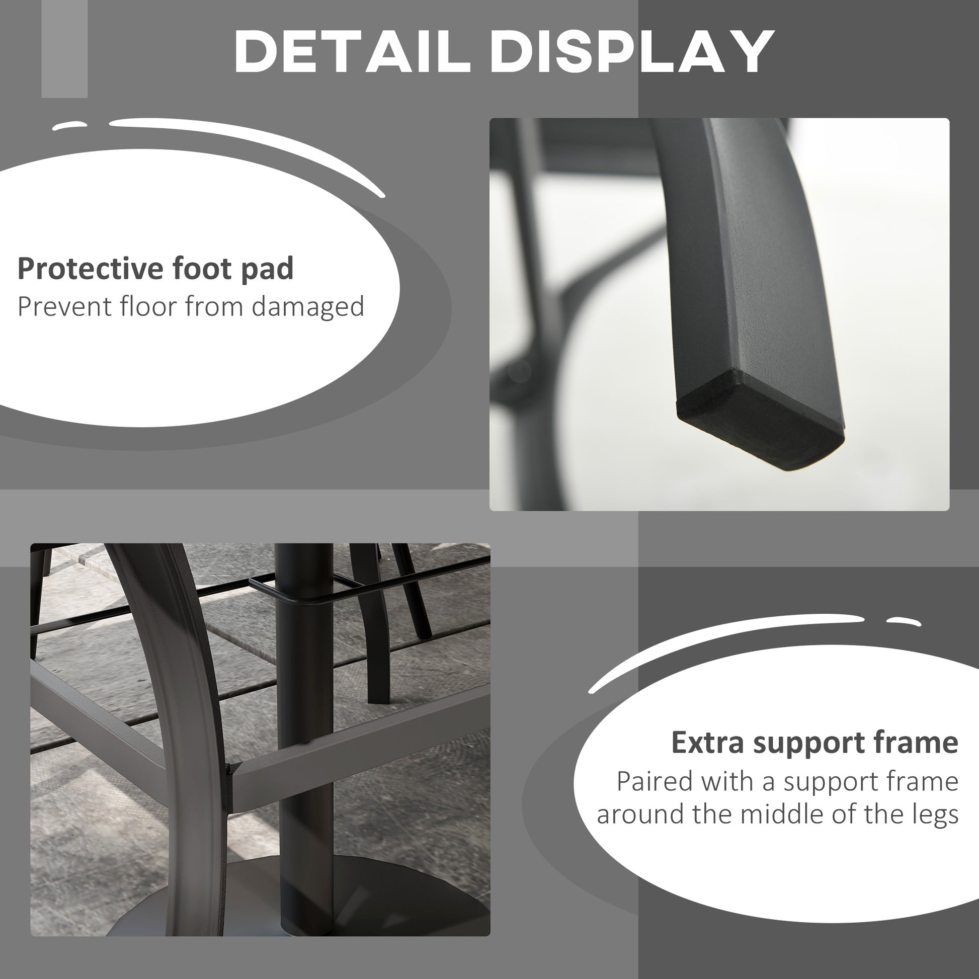 A sleek, strong addition for your garden and outdoor areas. Made from steel, this Outsunny garden table is a strong and sleek piece. It'sd large enough to provide room for up to four people to gather round. A middle hole gives room to hold a parasol umbrella: keep safely shaded as you relax. Complete with four legs for balance.