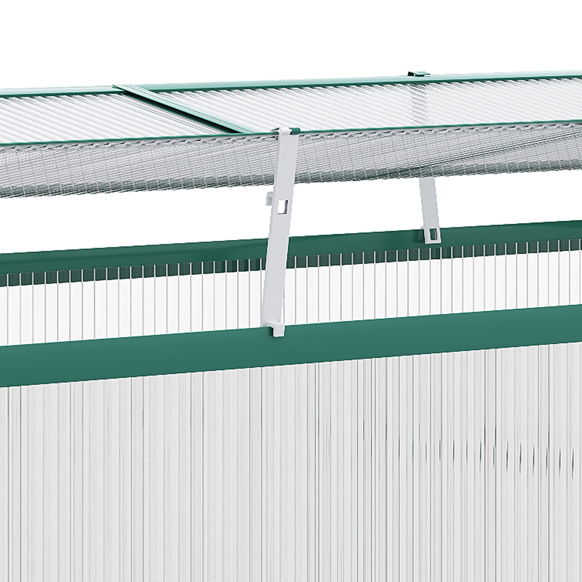 Low and compact growing - great for shelves, windowsills, corners and more. This Outsunny 130 x 70cm polycarbonate greenhouse is a versatile piece. With an aluminium frame for a strong core, this growhouse is fitted with thick polycarbonate panel walls for a safe enclosed space. Look to the four opening roof panels to allow fresh air in - they can be propped up in place to keep them open. The clear panels mean you can see inside easily to observe plant growth.