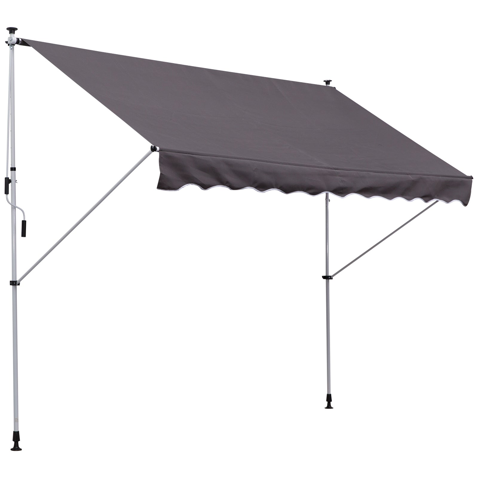 Bring shelter into your outdoor garden space when needed with this 300cm x 150cm retractable awning from Outsunny. The powder-coated aluminium frame ensures it is tough and durable for long-term use in your home. Manually operated via the crank handle, the garden awning angle can be adjusted between 0 – 90 degrees, allowing you to easily set it to a position which suits you, with the weather-resistant canopy shielding you from UV rays, the sun glare and light wind and rain.